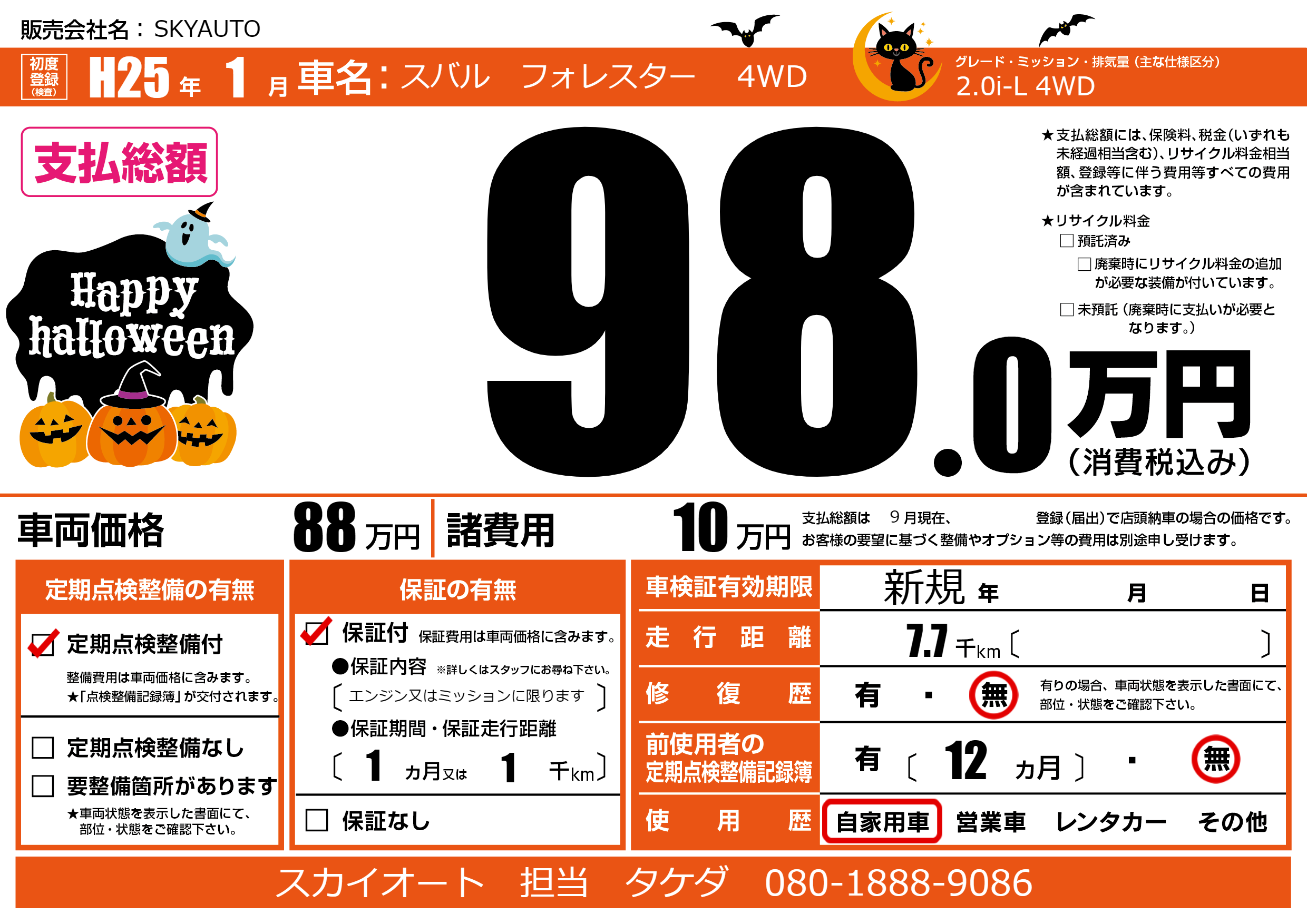 | 車名 | スバル フォレスター 4WD | グレード ミッション 排気量 |