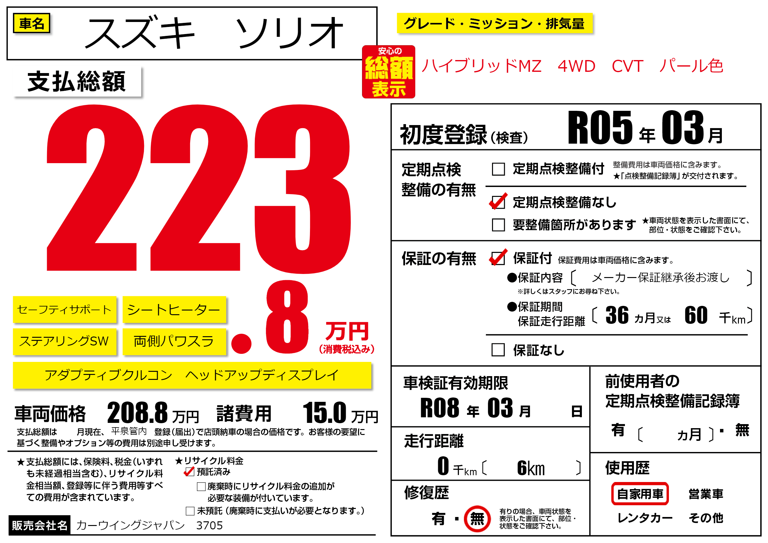| 走行キロ | - | 初年度登録 | R05年03月 |