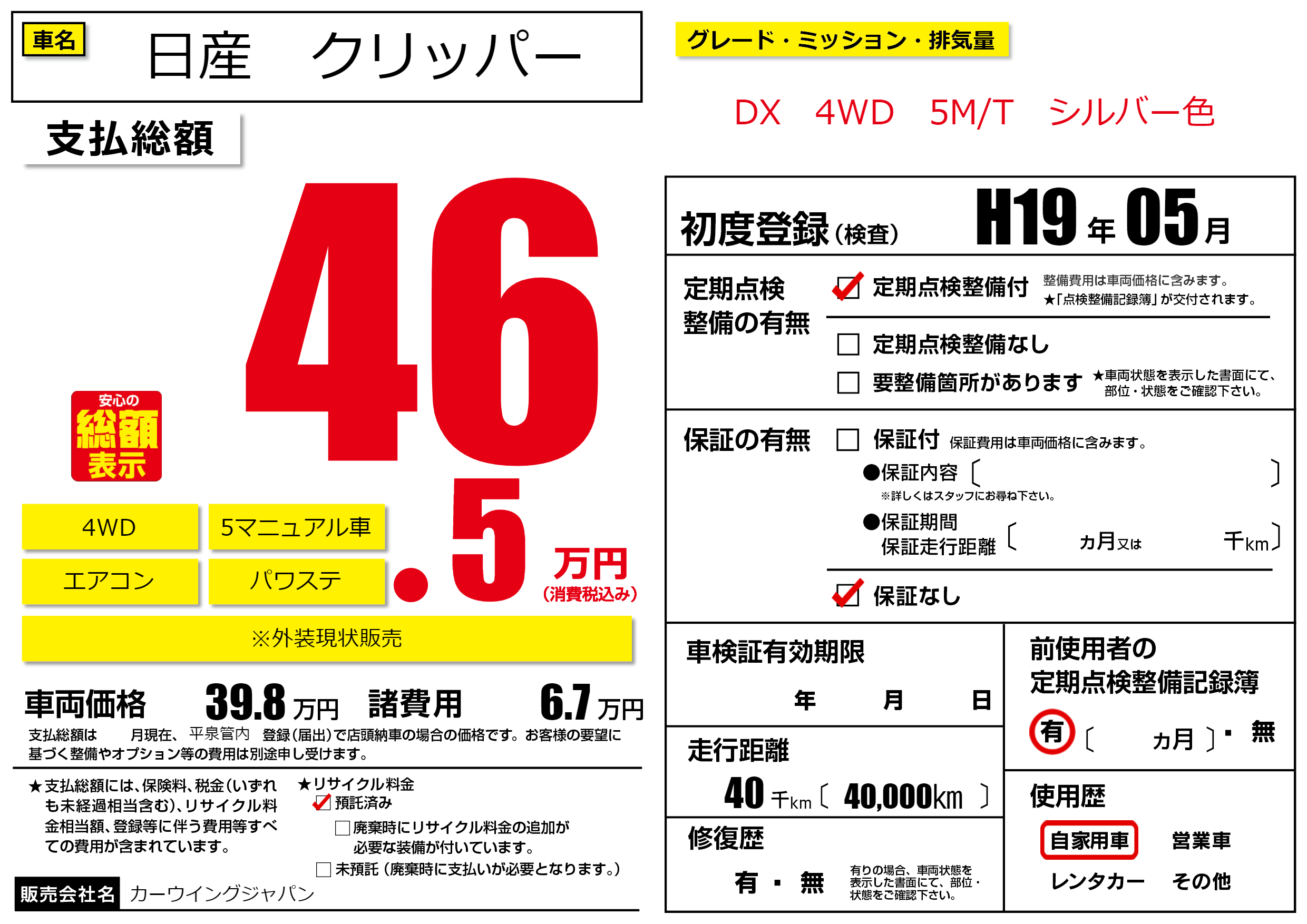 | 走行キロ | 4万km | ||