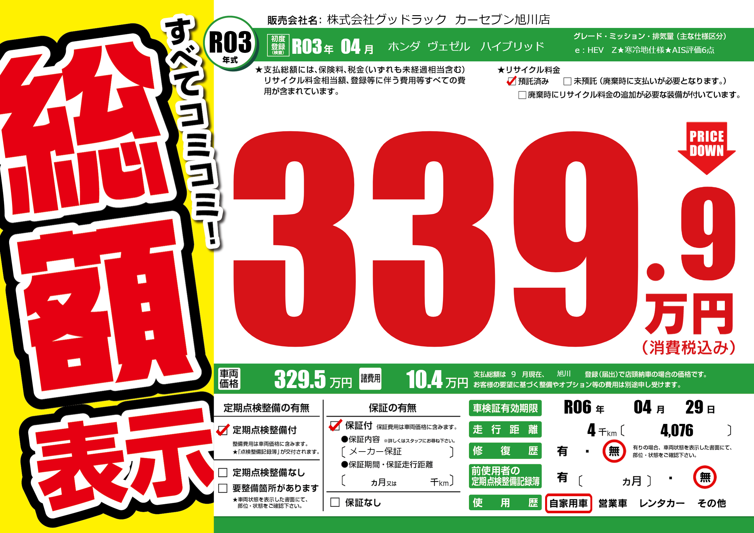 | 車名 | ホンダ ヴェゼル ハイブリッド | グレード ミッション 排気量 |
