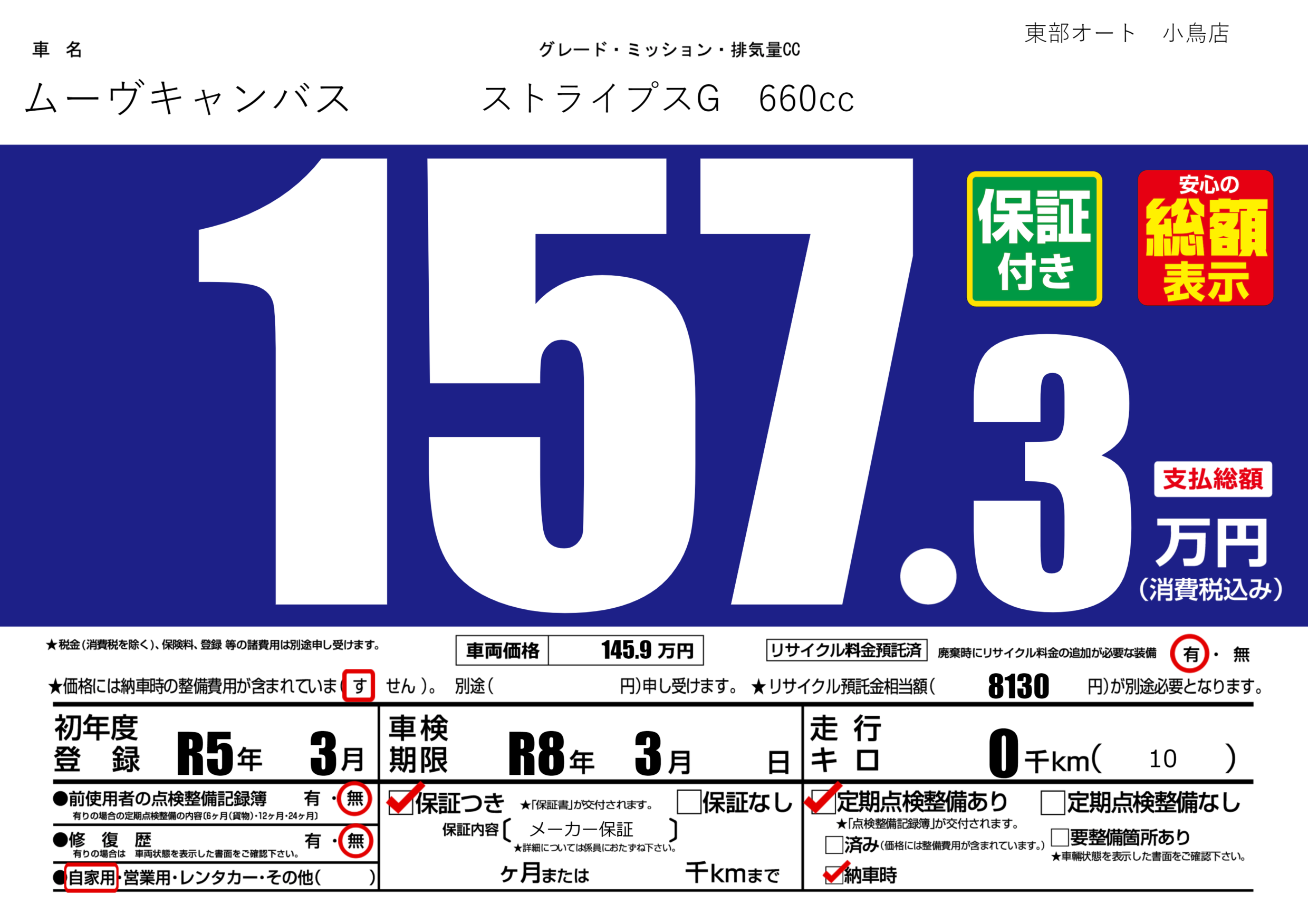 | 車検制限 | R8年 3月 - 日 | ||