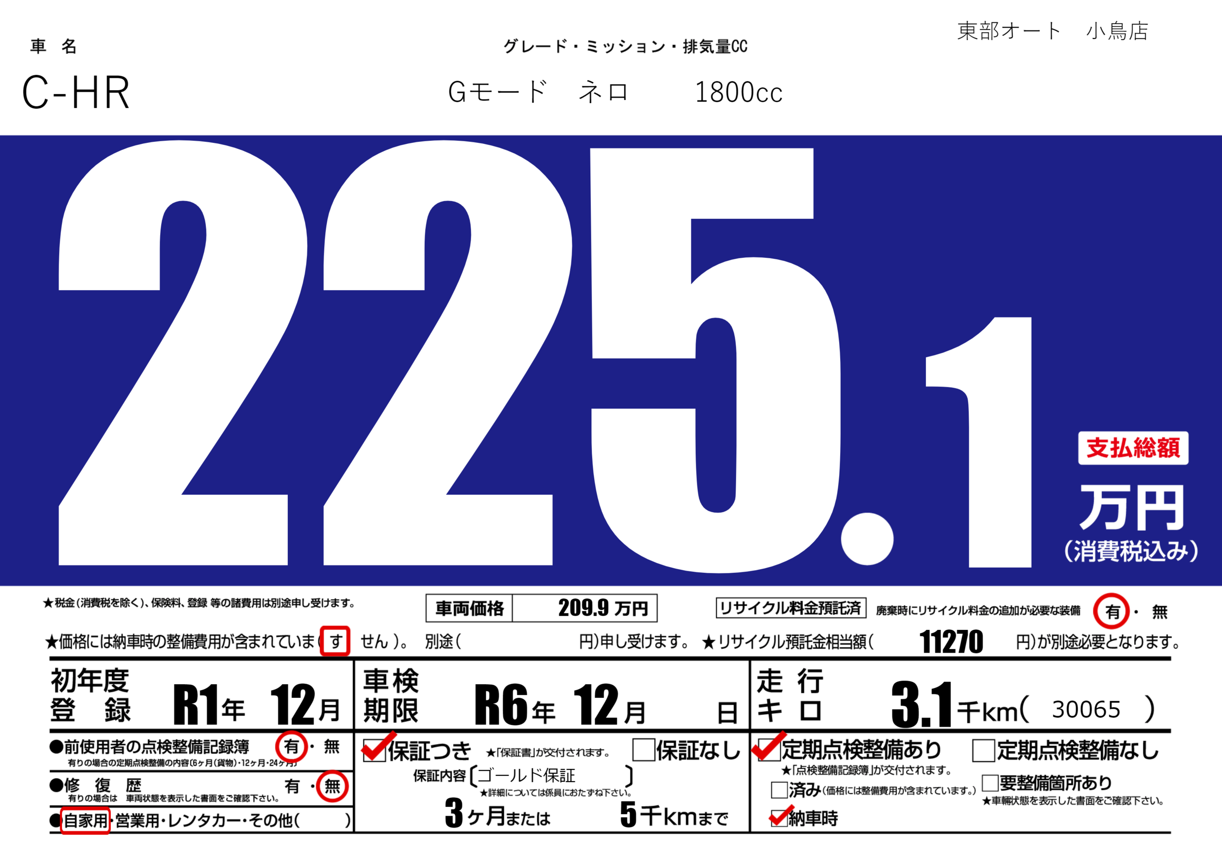 | 車名 | C-HR | グレード ミッション 排気量 |