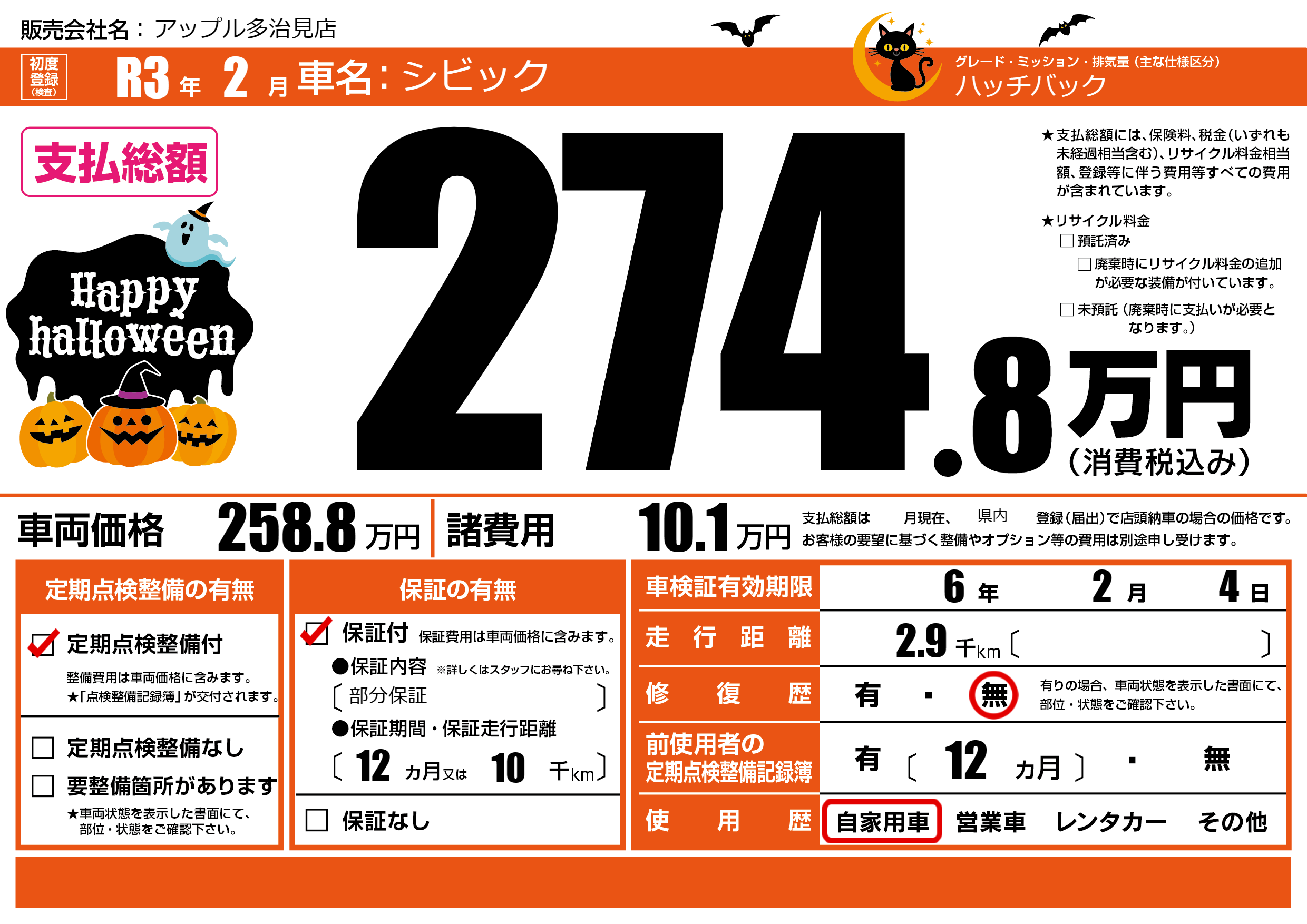 | 走行キロ | 0.2万km | 初年度登録 | R3年2月 |