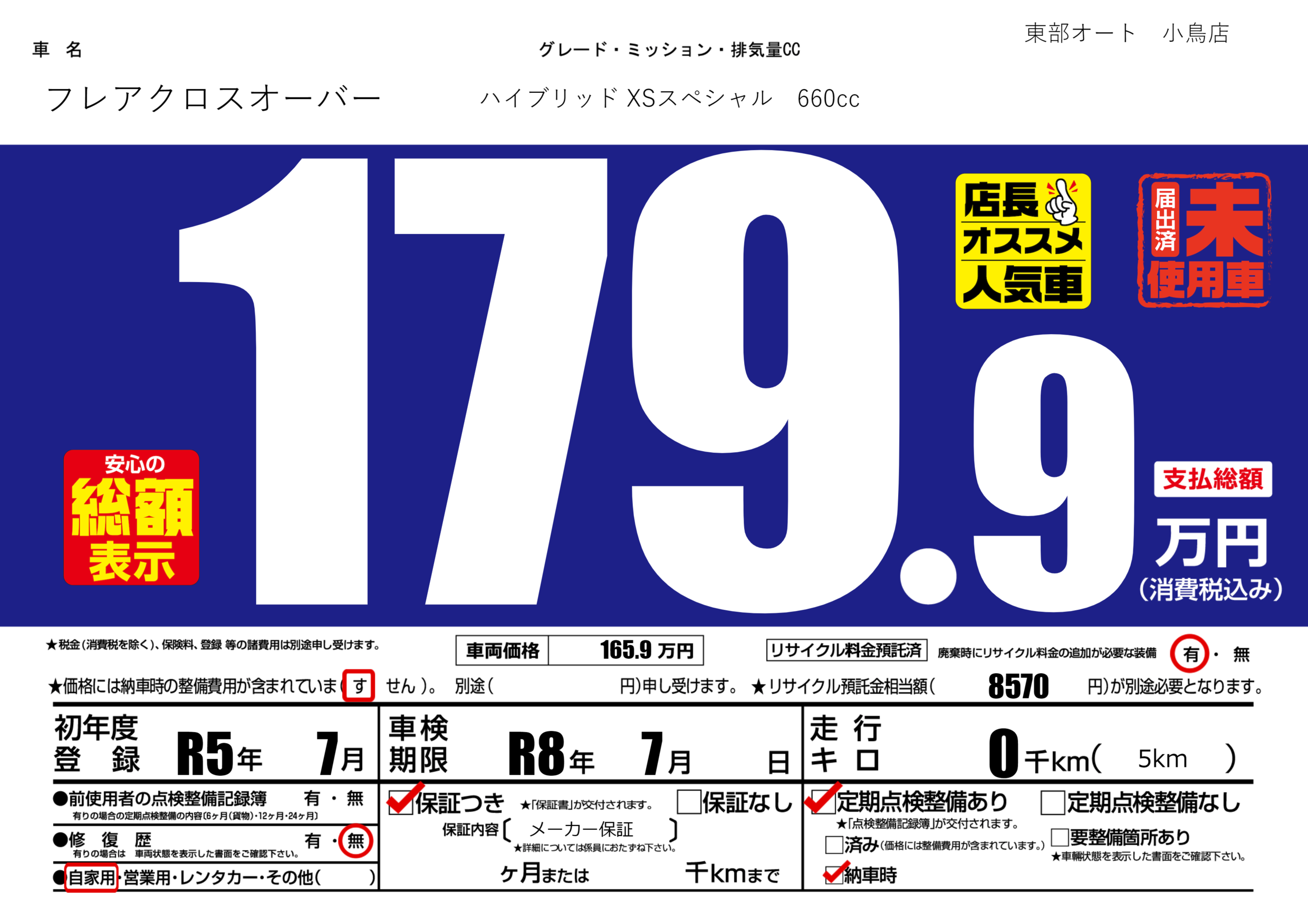 | 車検制限 | R8年 7月 - 日 | ||