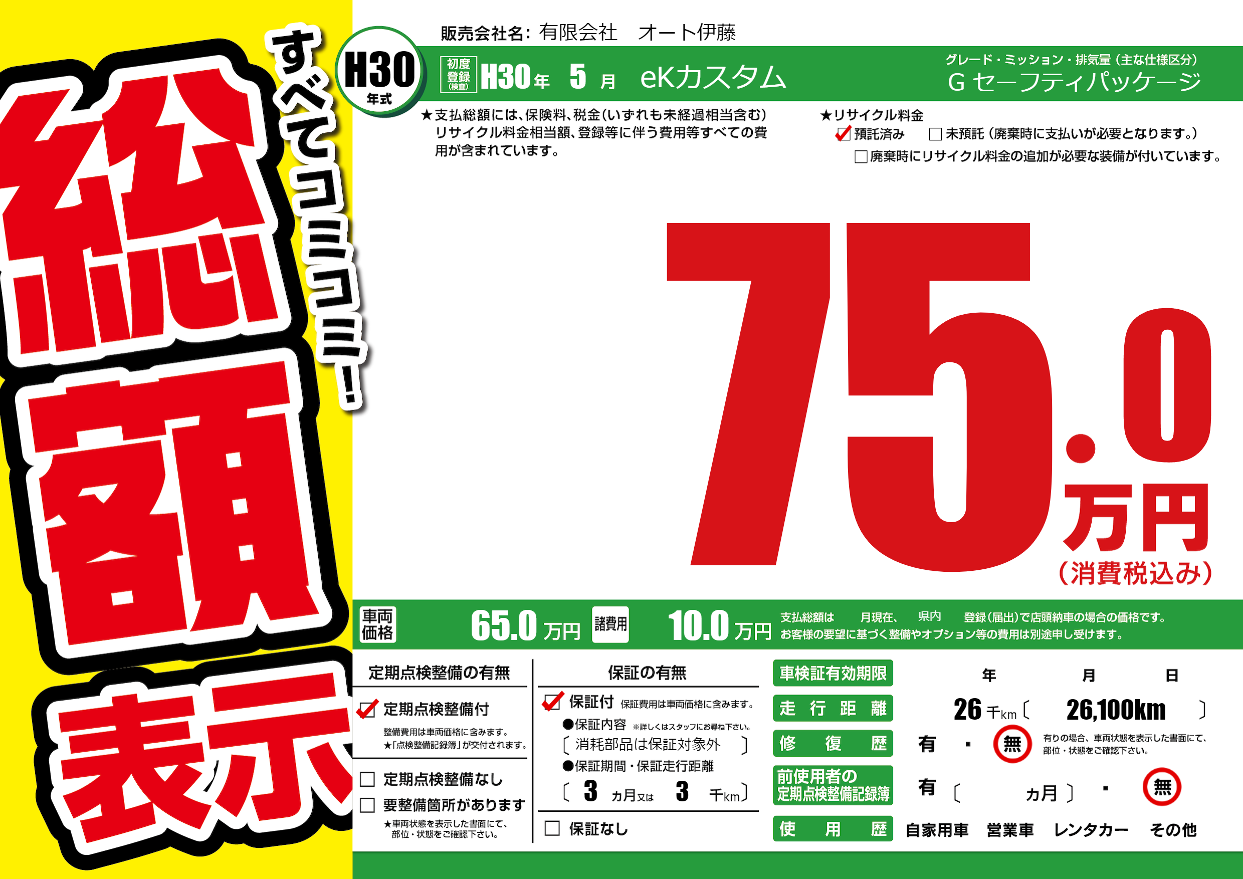 保証付き 保証内容(消耗部品は保証対象外) 3ヶ月または(3)千kmまで |