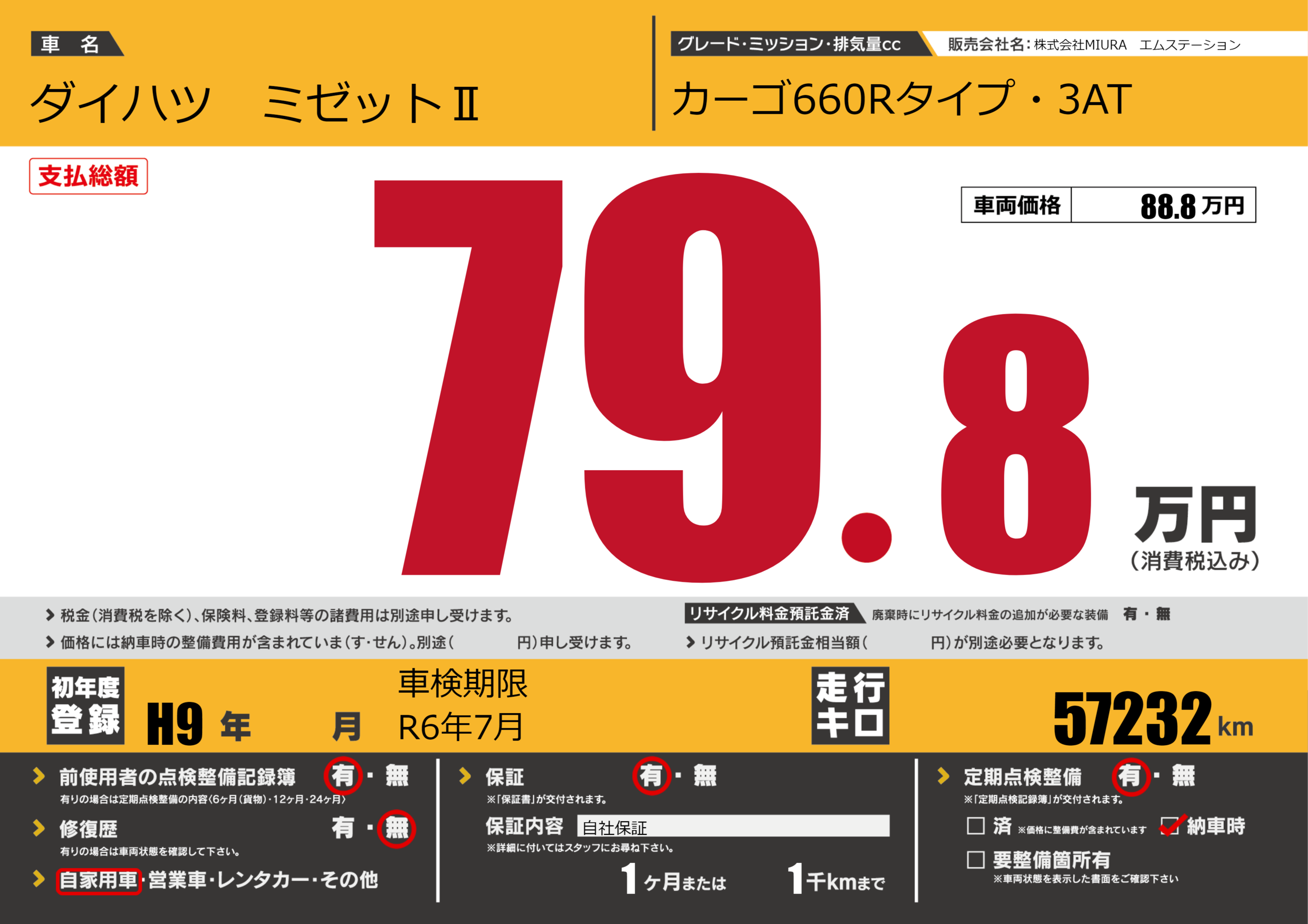 | 車名 | ダイハツ ミゼットⅡ | グレード ミッション 排気量 |
