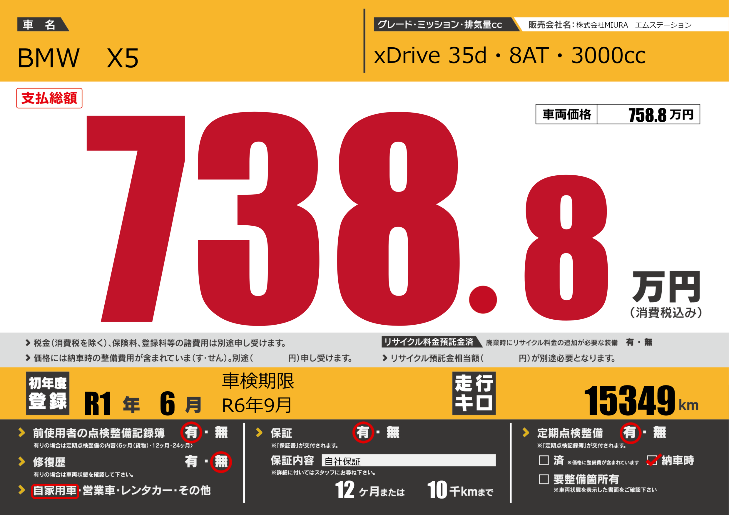 保証付き 保証内容(自社保証) 12ヶ月または(10)千kmまで |