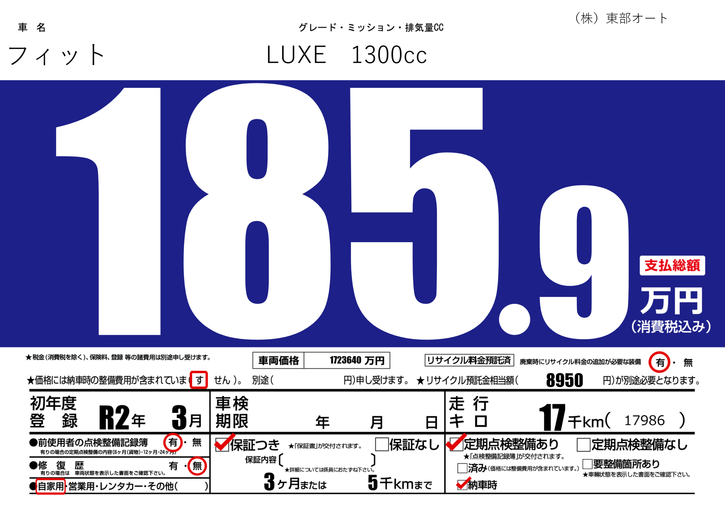 | 定期点検整備 | 定期点検整備あり 納車時あり | ||