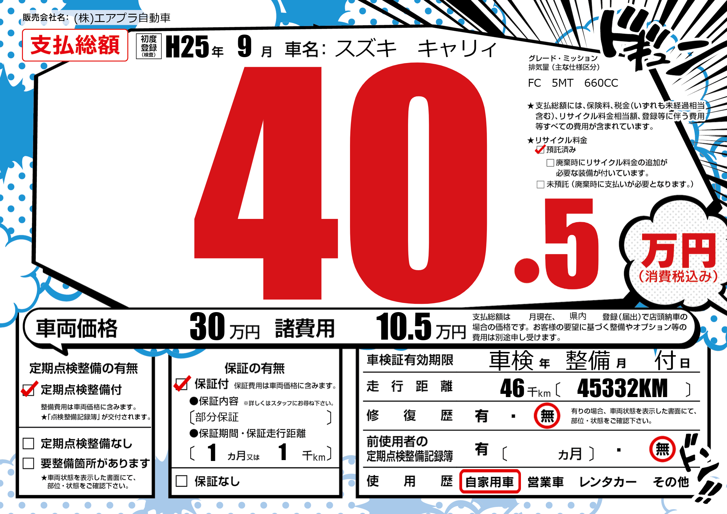 | 車名 | スズキ キャリィ | グレード ミッション 排気量 |