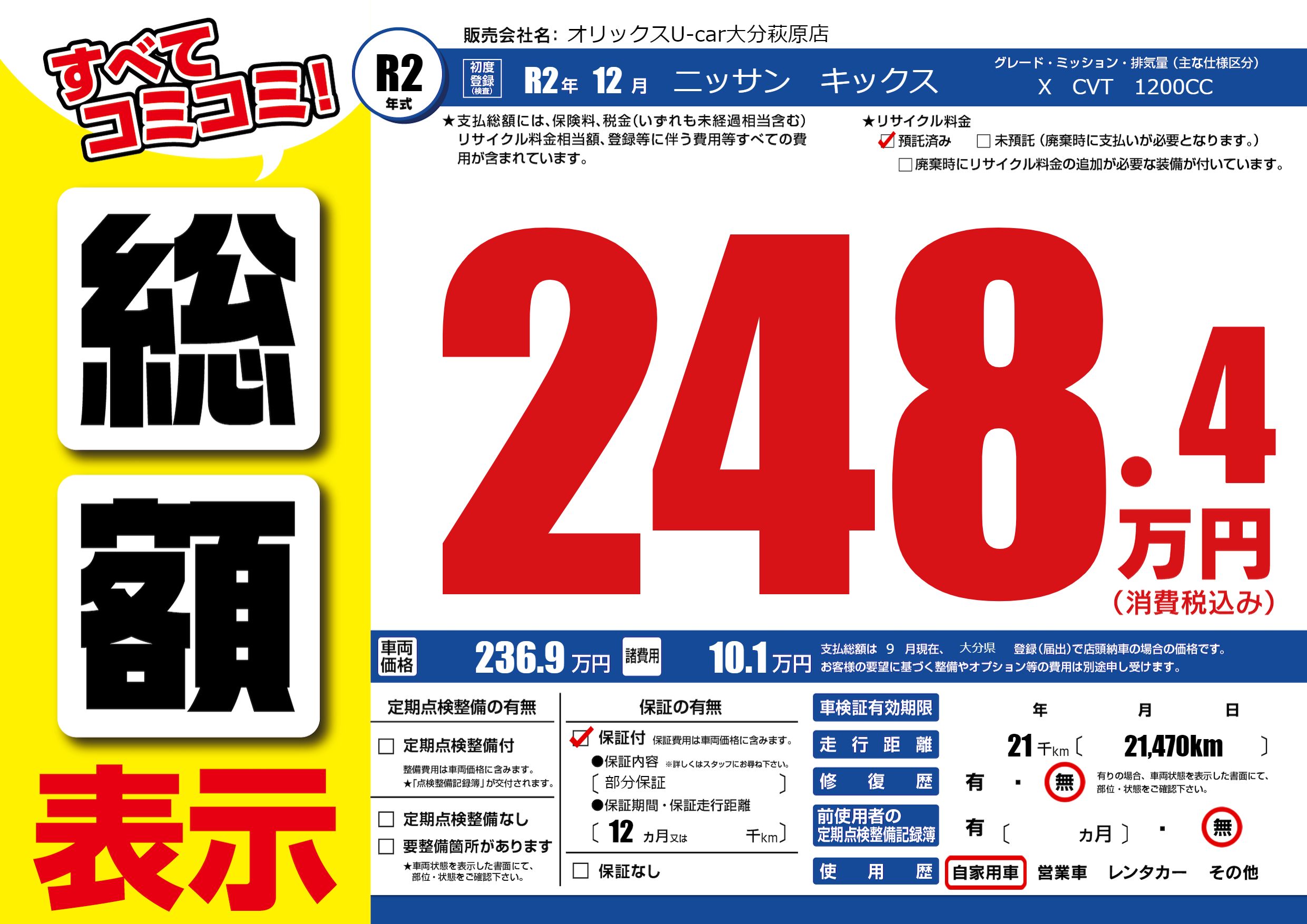 保証付き 保証内容(部分保証) 12ヶ月または()千kmまで |