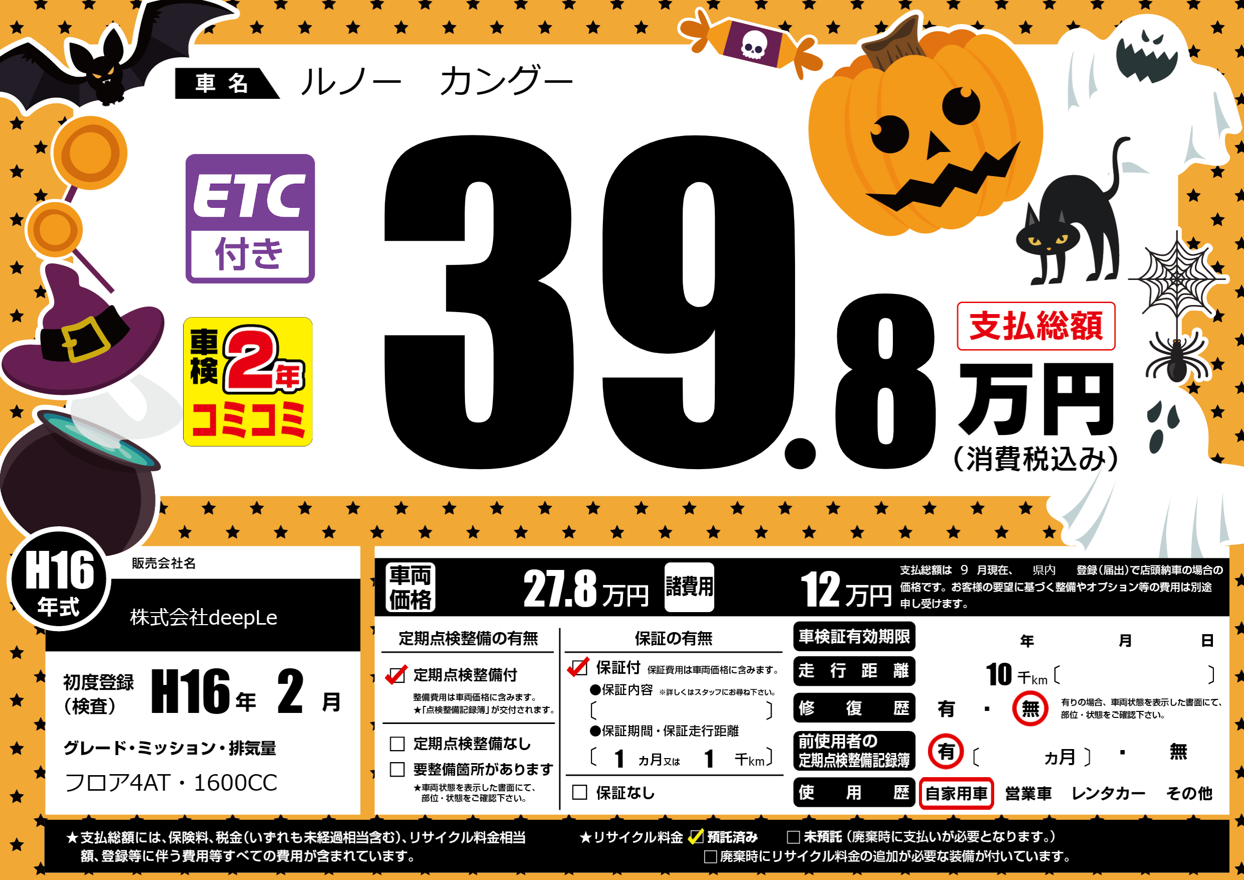 | 走行キロ | 1万km | 初年度登録 | H16年2月 |