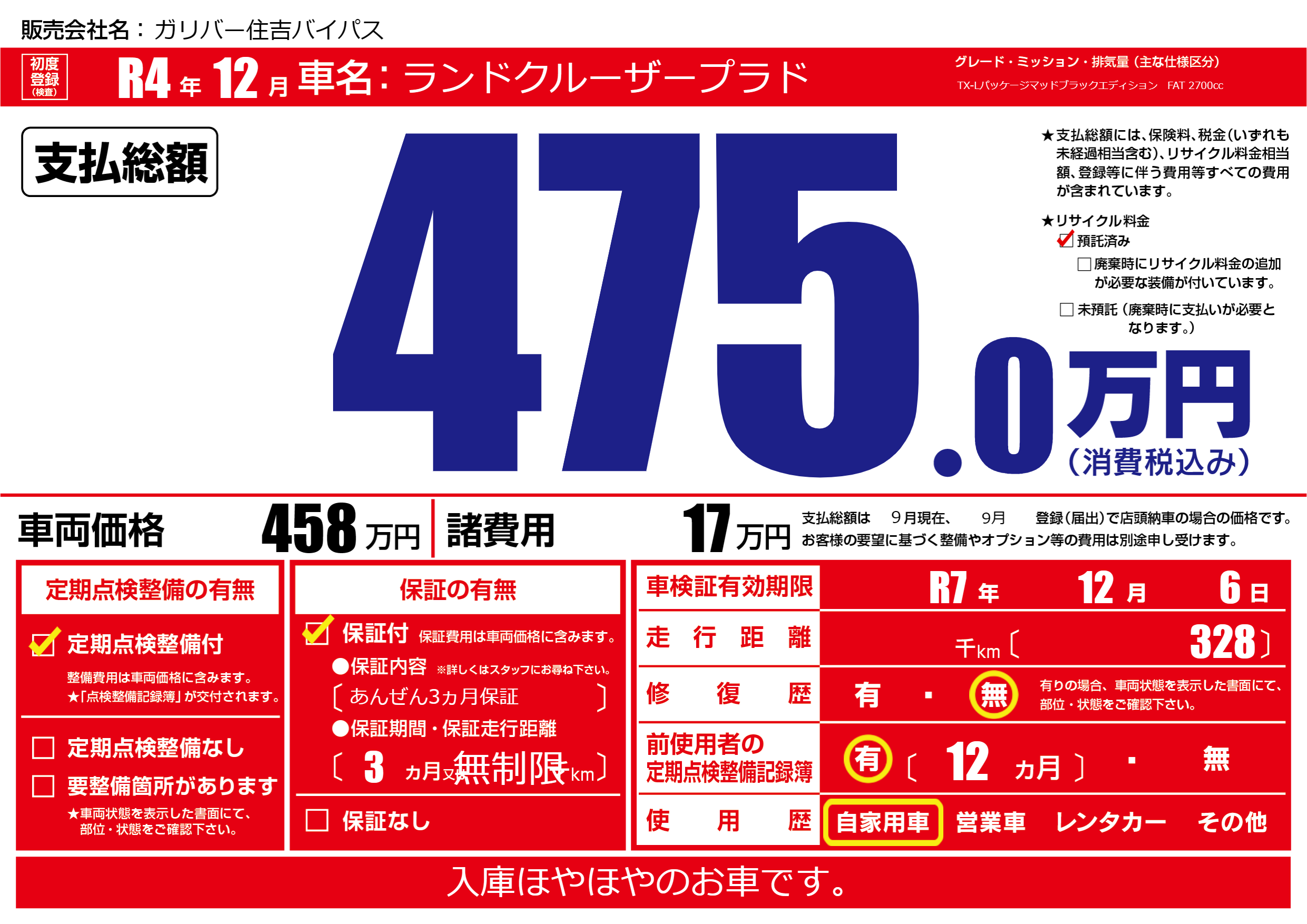 | 車名 | ランドクルーザープラド | グレード ミッション 排気量 |