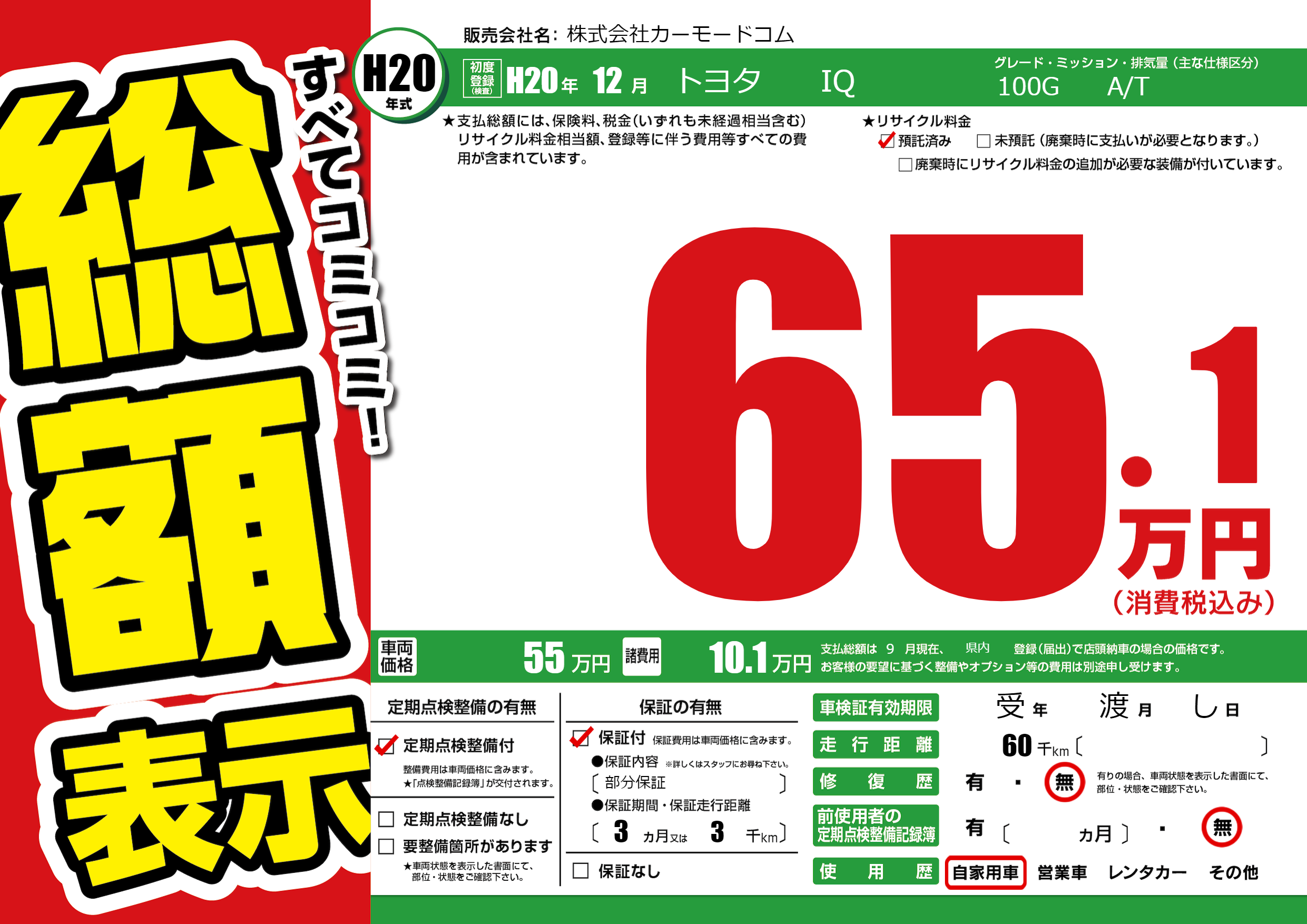保証付き 保証内容(部分保証) 3ヶ月または(3)千kmまで |