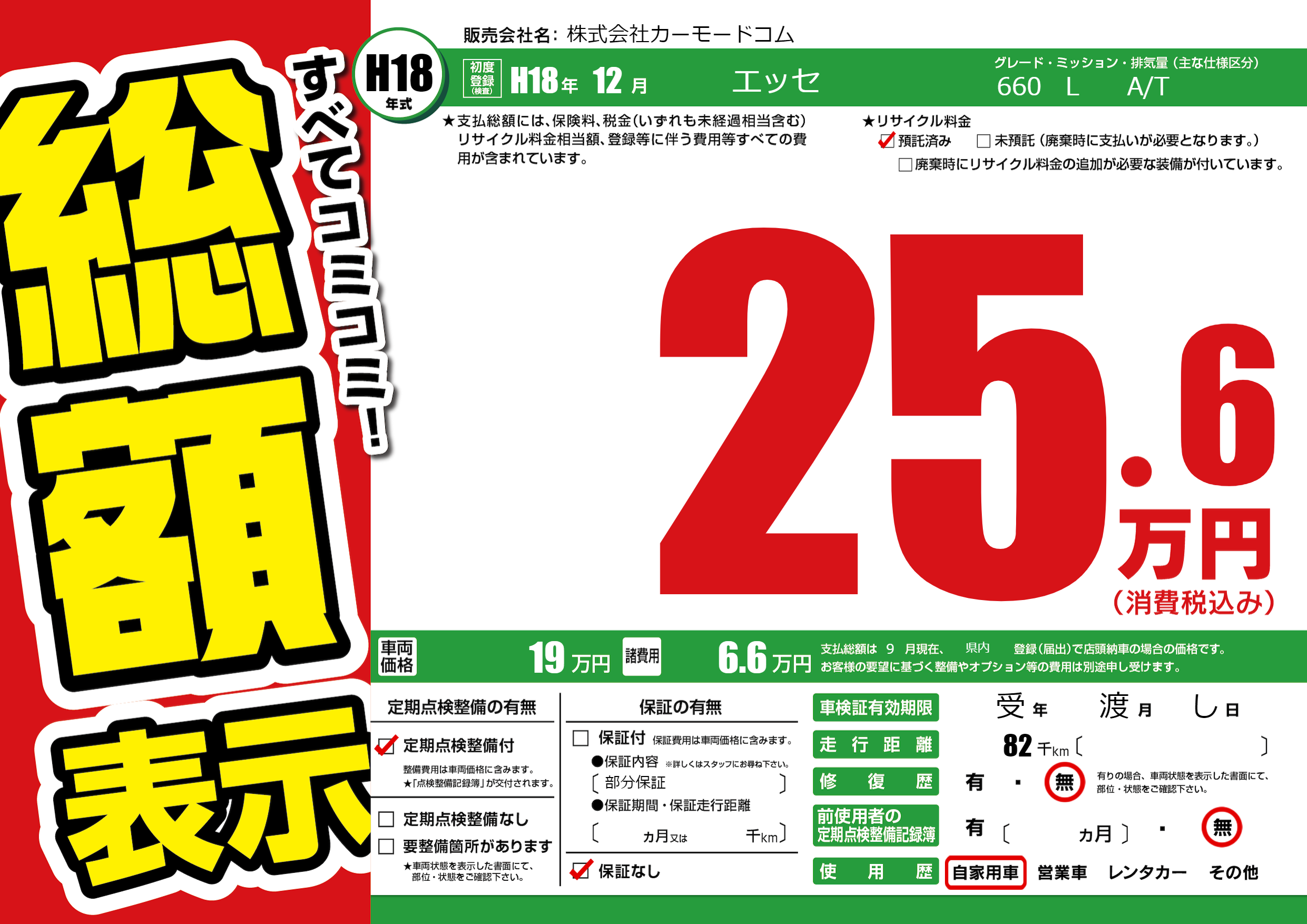 | 車名 | エッセ | グレード ミッション 排気量 |