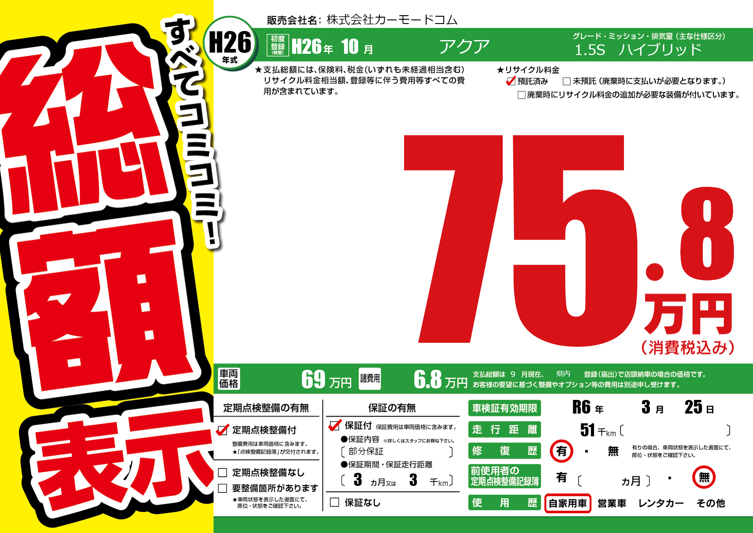 なし | 車検制限 | R6年3月25月 |