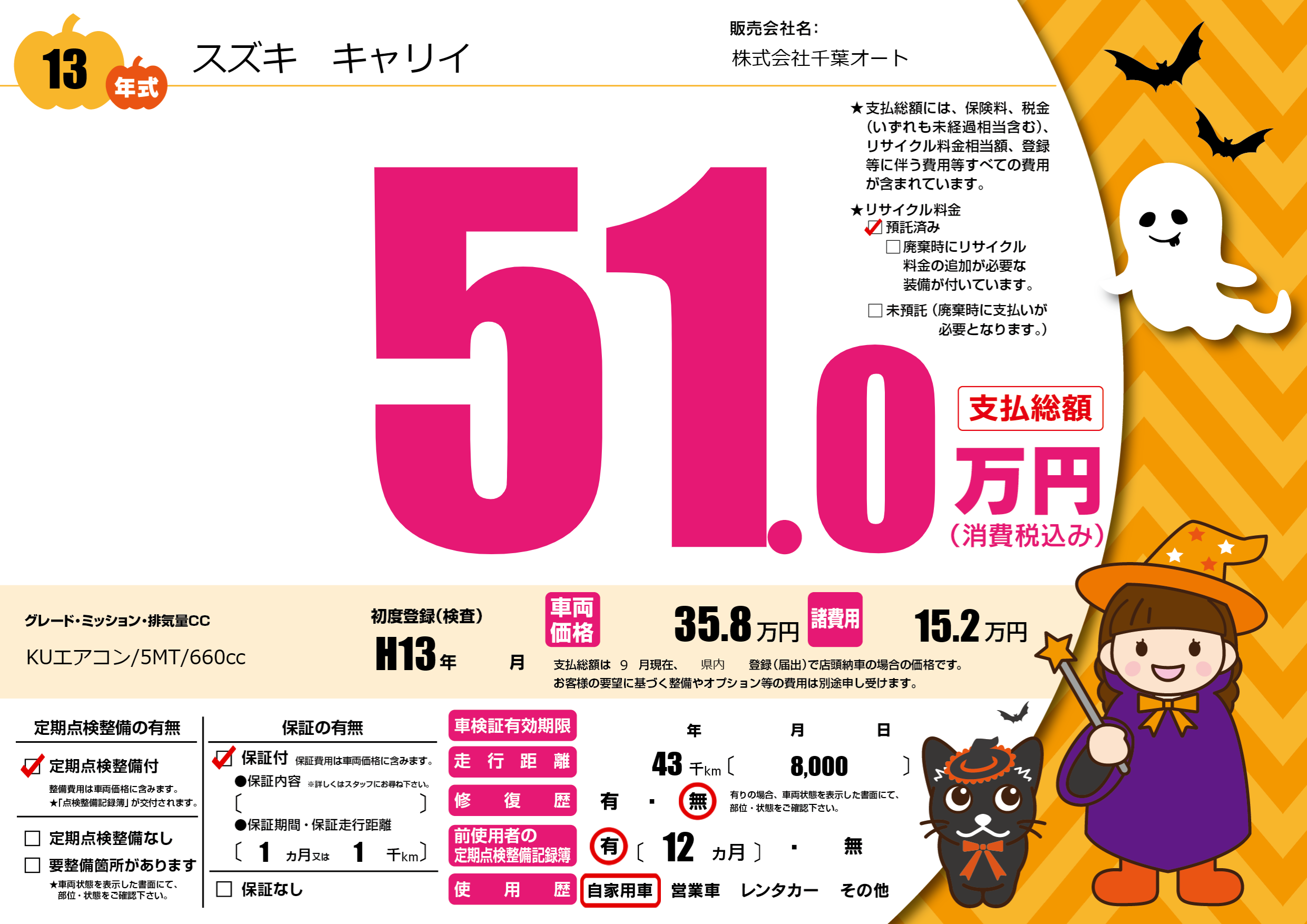 | 車名 | スズキ キャリイ | グレード ミッション 排気量 |