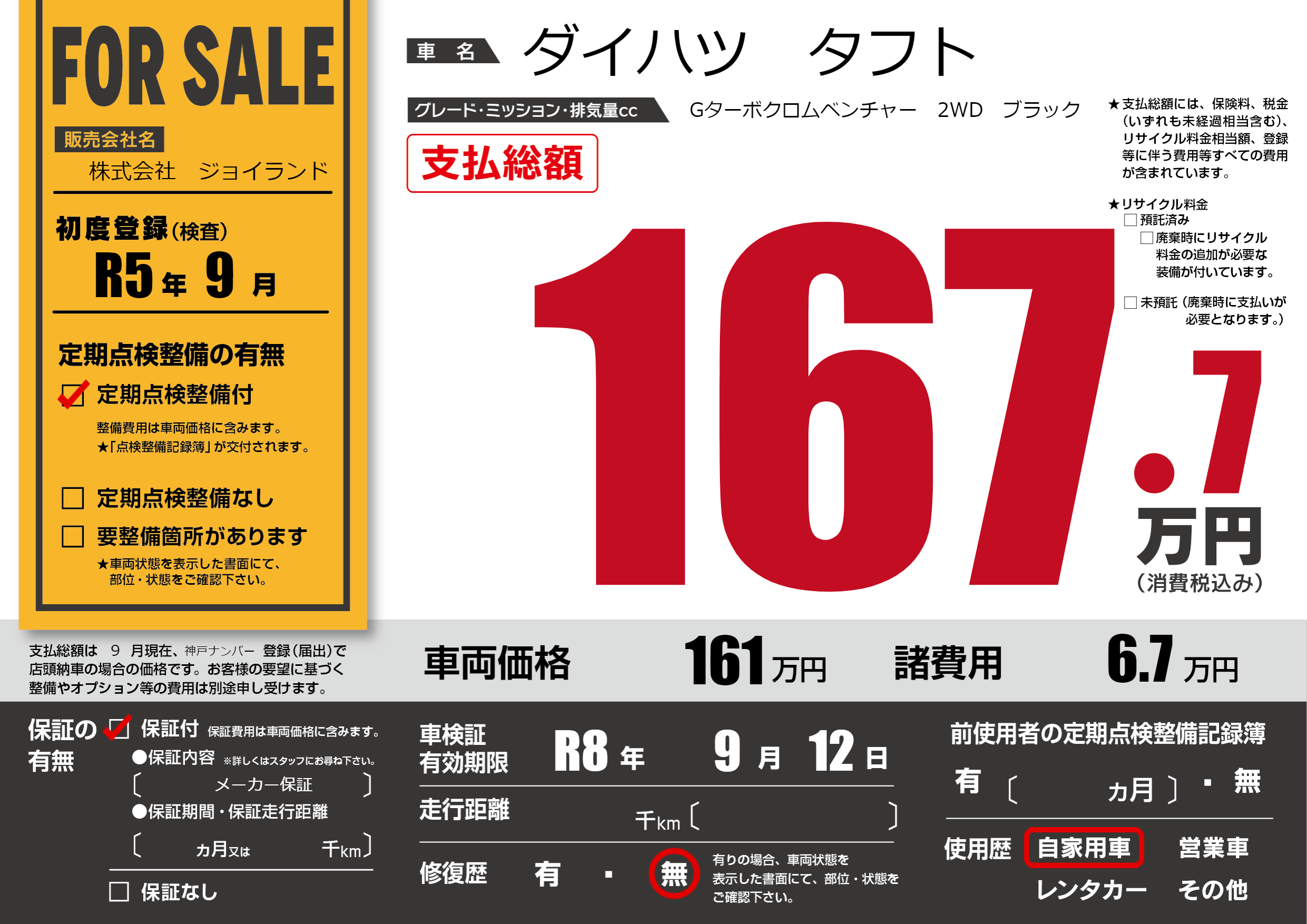 保証付き 保証内容( メーカー保証) ---ヶ月または()千kmまで |
