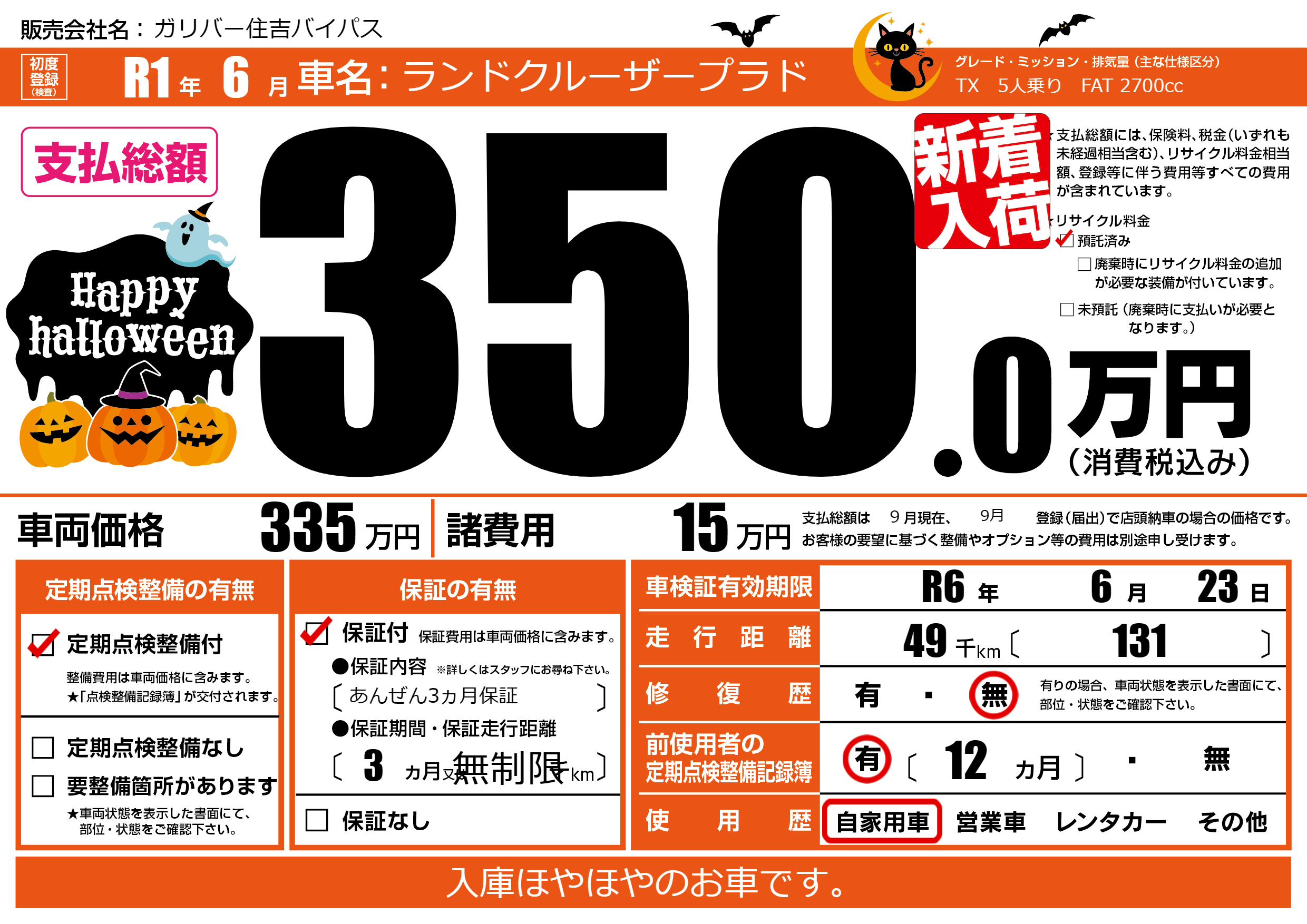 なし | 車検制限 | R6年6月23月 |