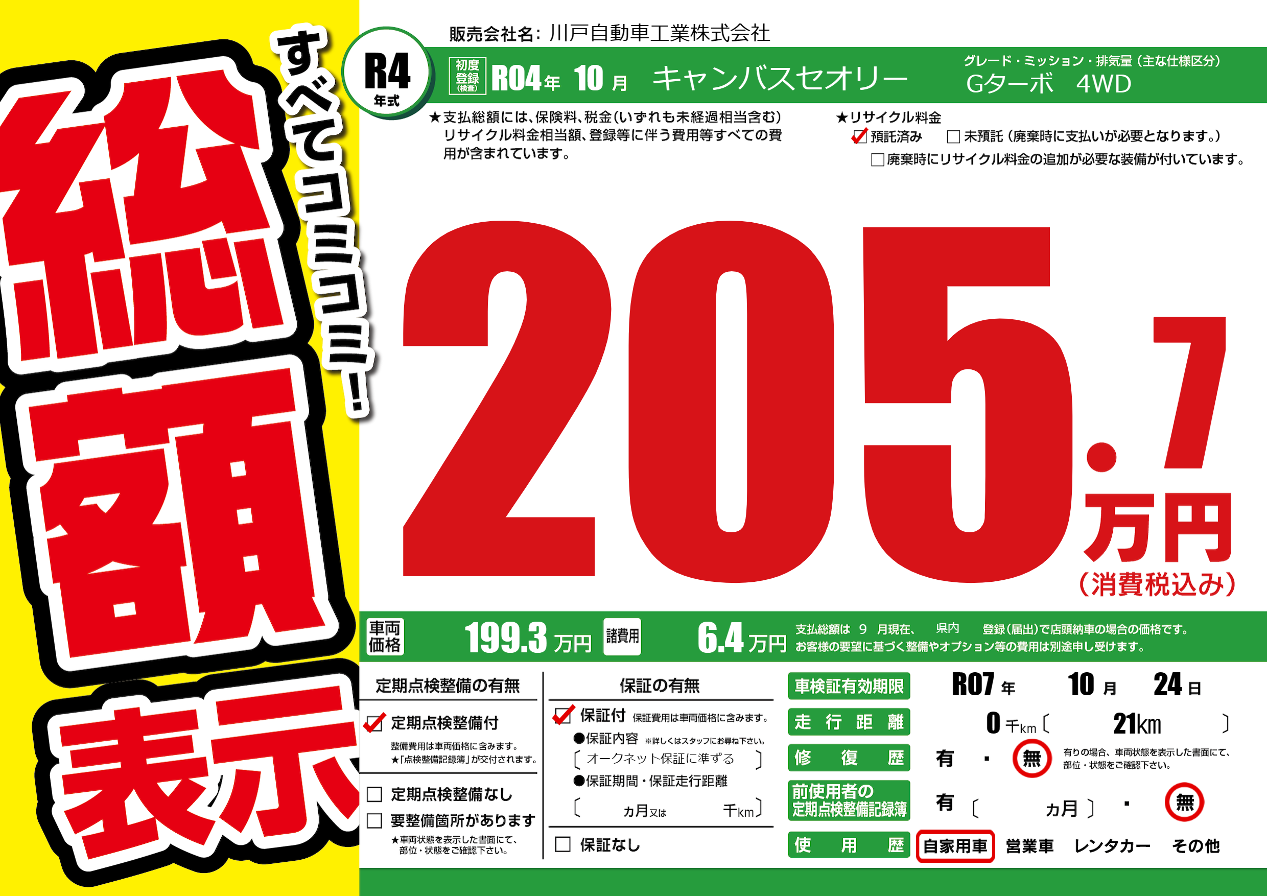 | 走行キロ | - | 初年度登録 | R04年10月 |