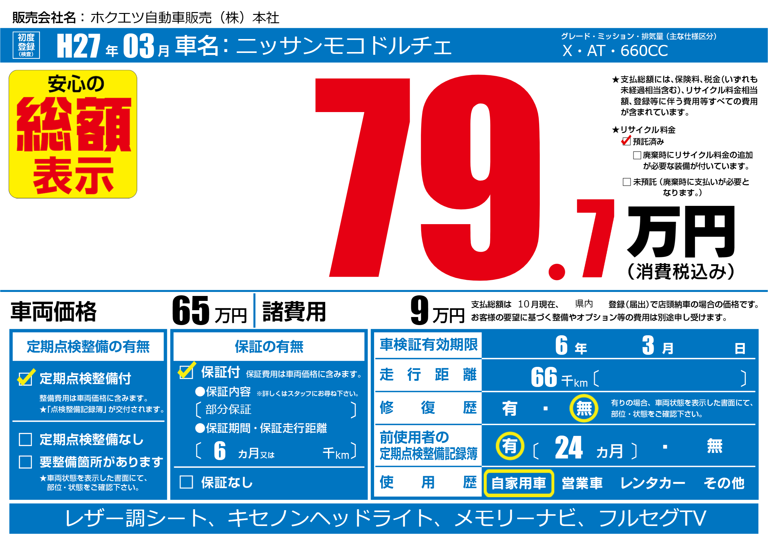 | 車名 | ニッサンモコドルチェ | グレード ミッション 排気量 |