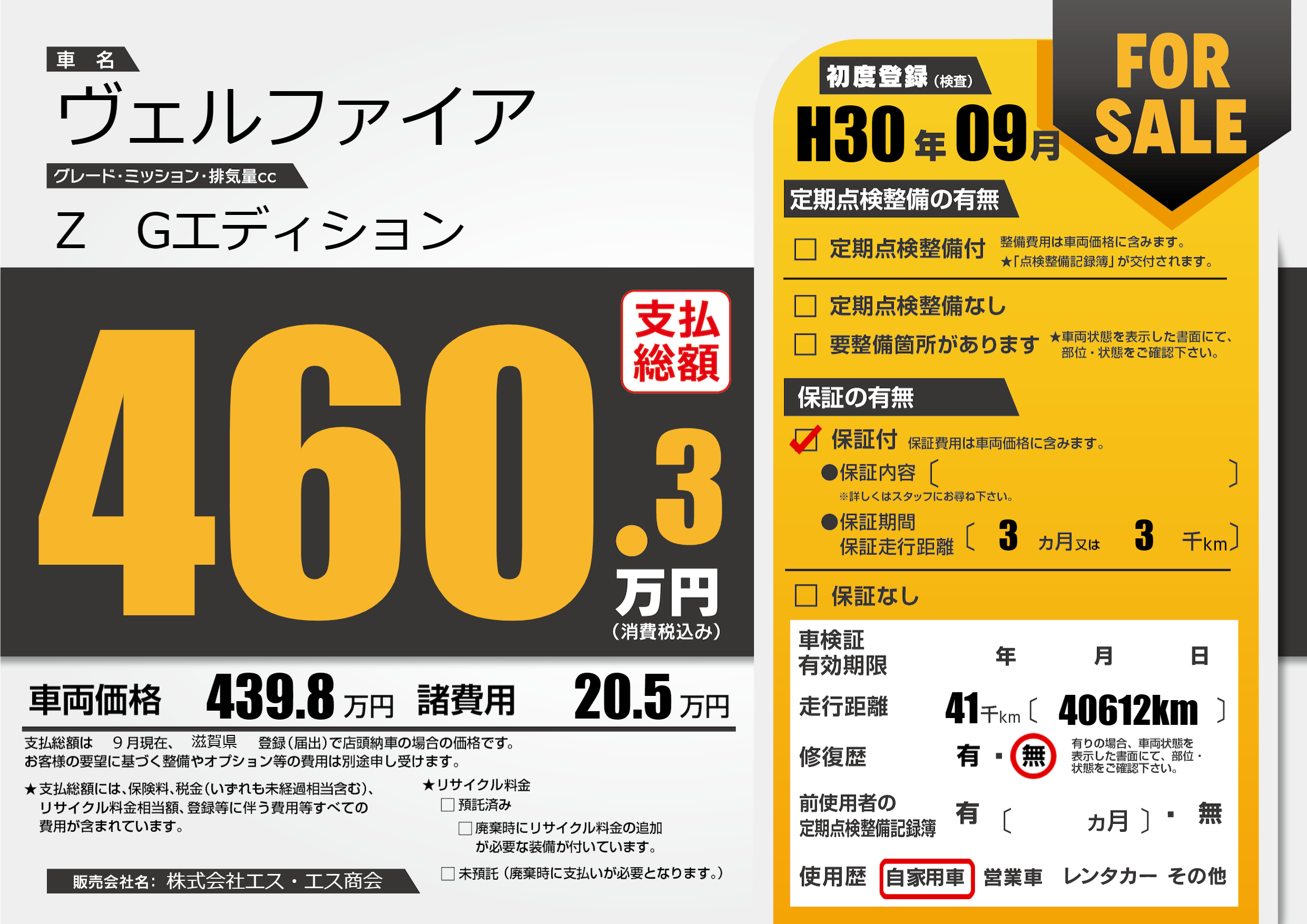 | 初年度登録 | H30年09月 | ||