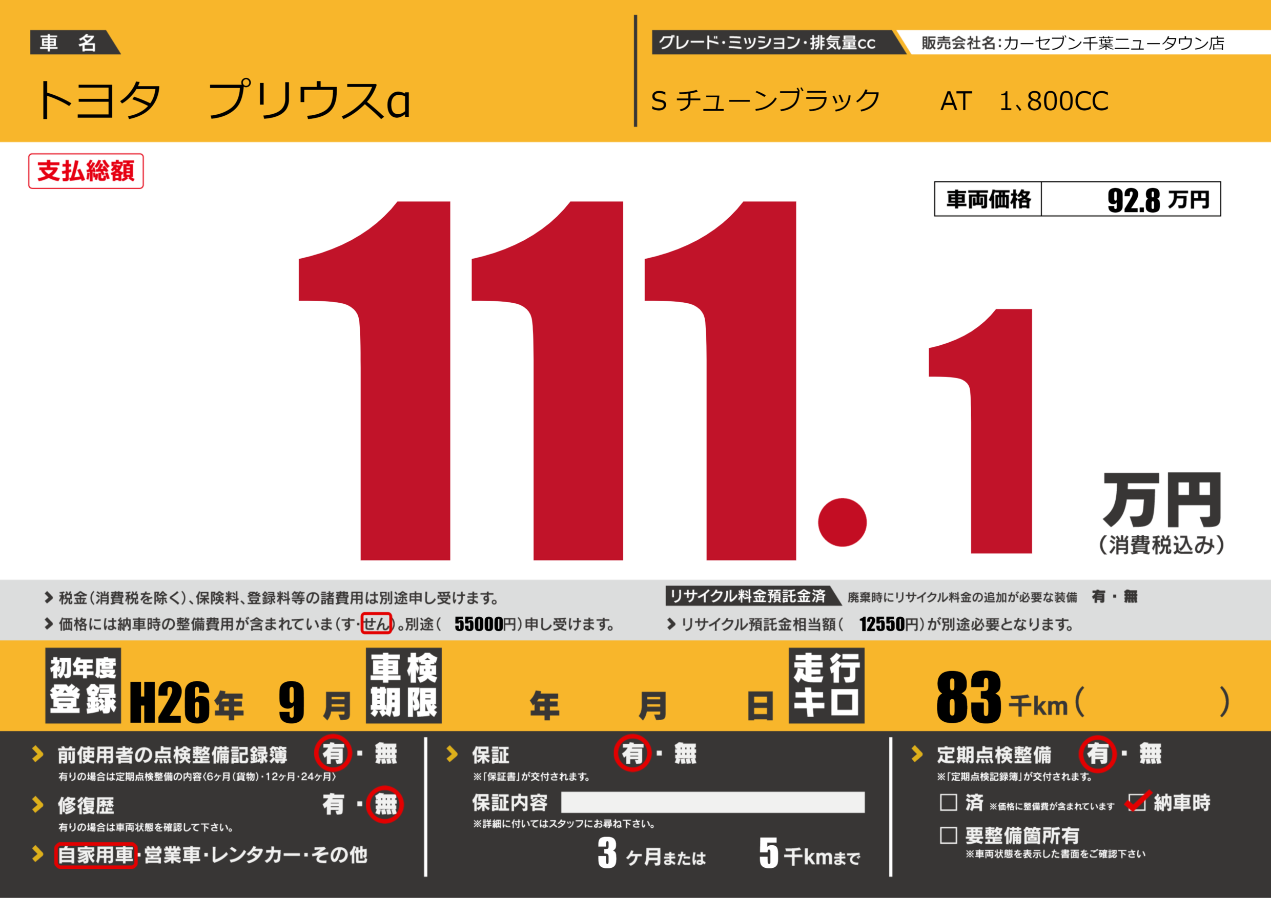 | 車名 | トヨタ プリウスα | グレード ミッション 排気量 |