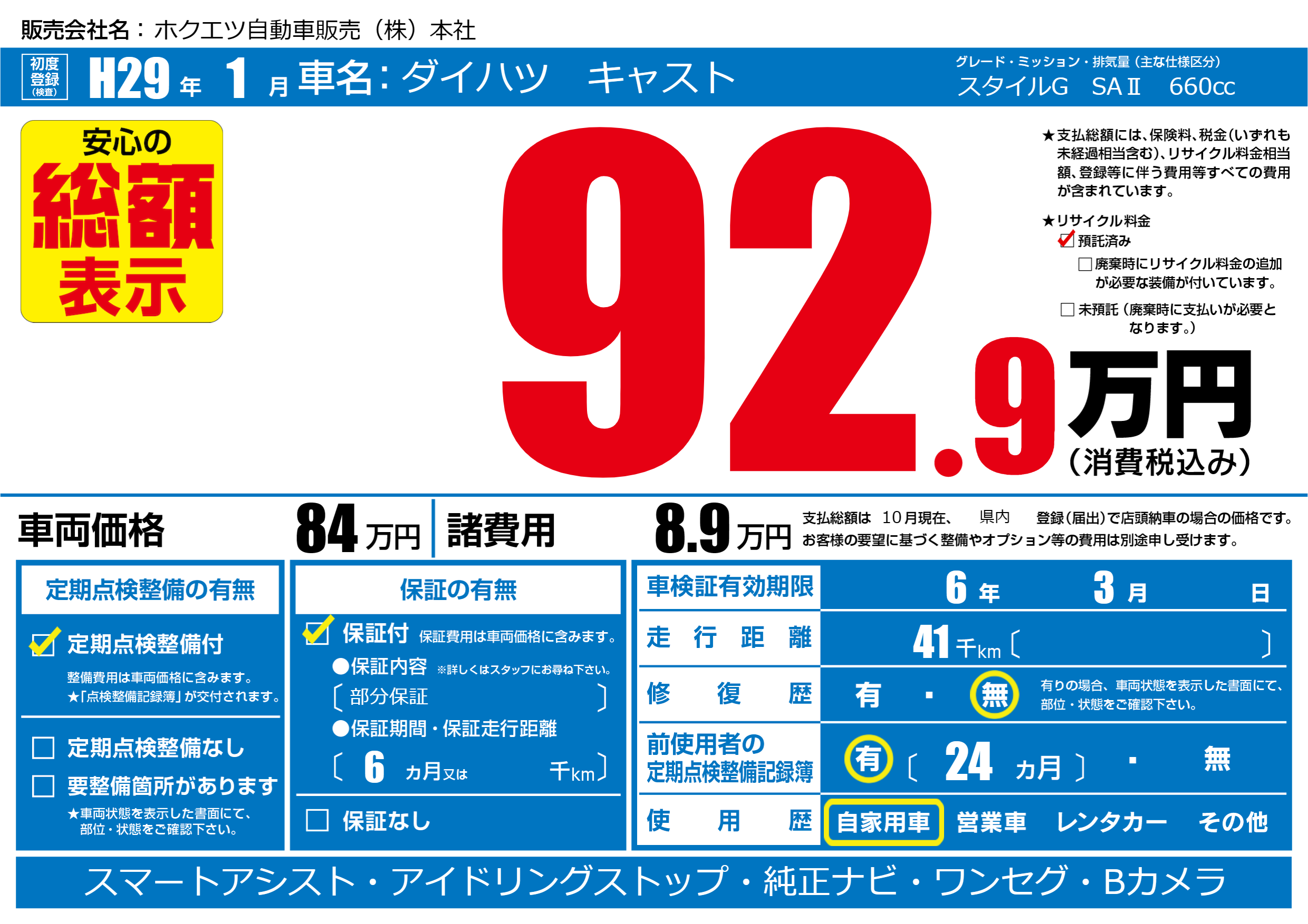 | 車検制限 | 6年 3月 - 日 | ||