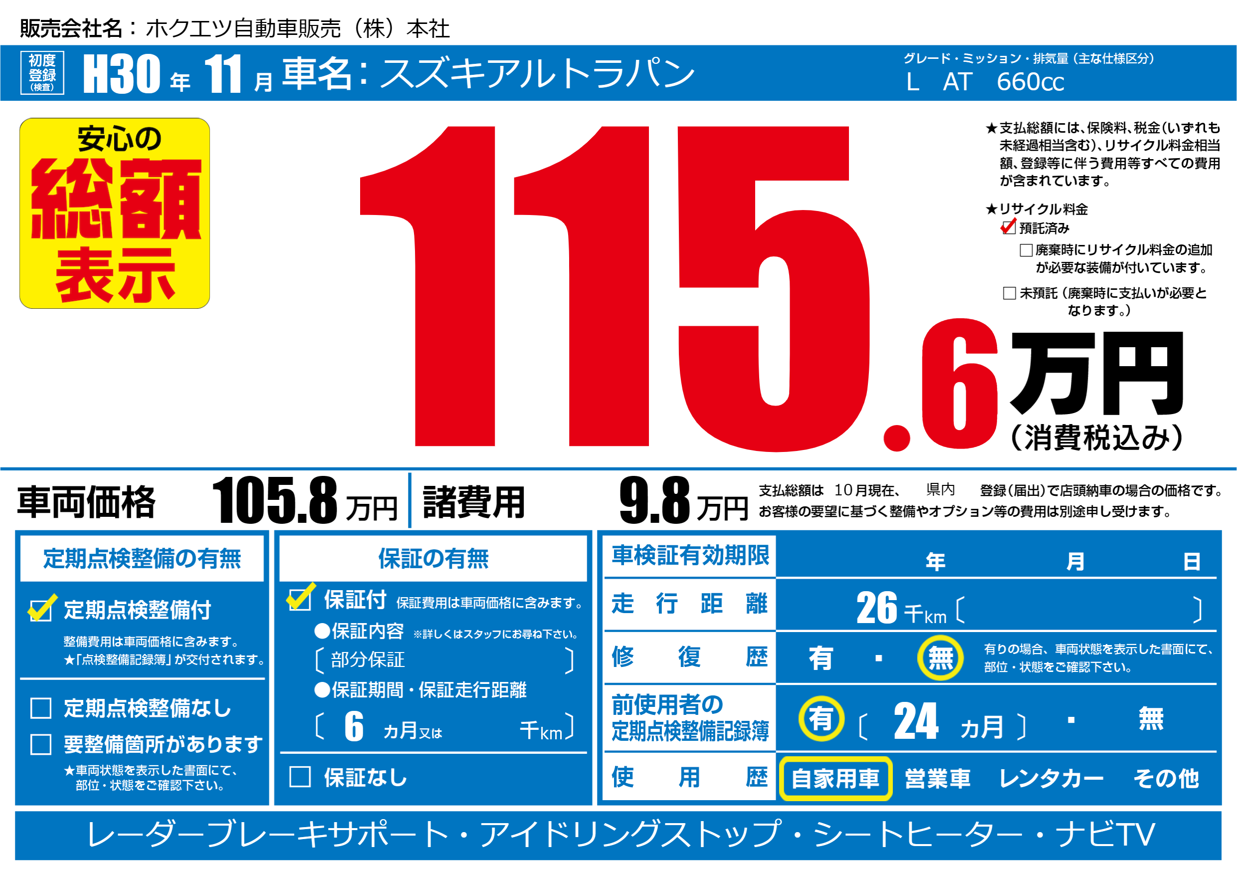 | 定期点検整備 | 定期点検整備あり | ||