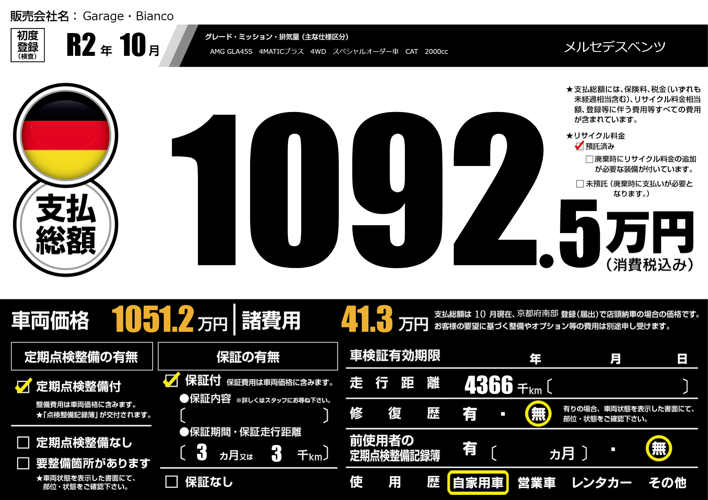 | 定期点検整備 | 定期点検整備あり | ||
