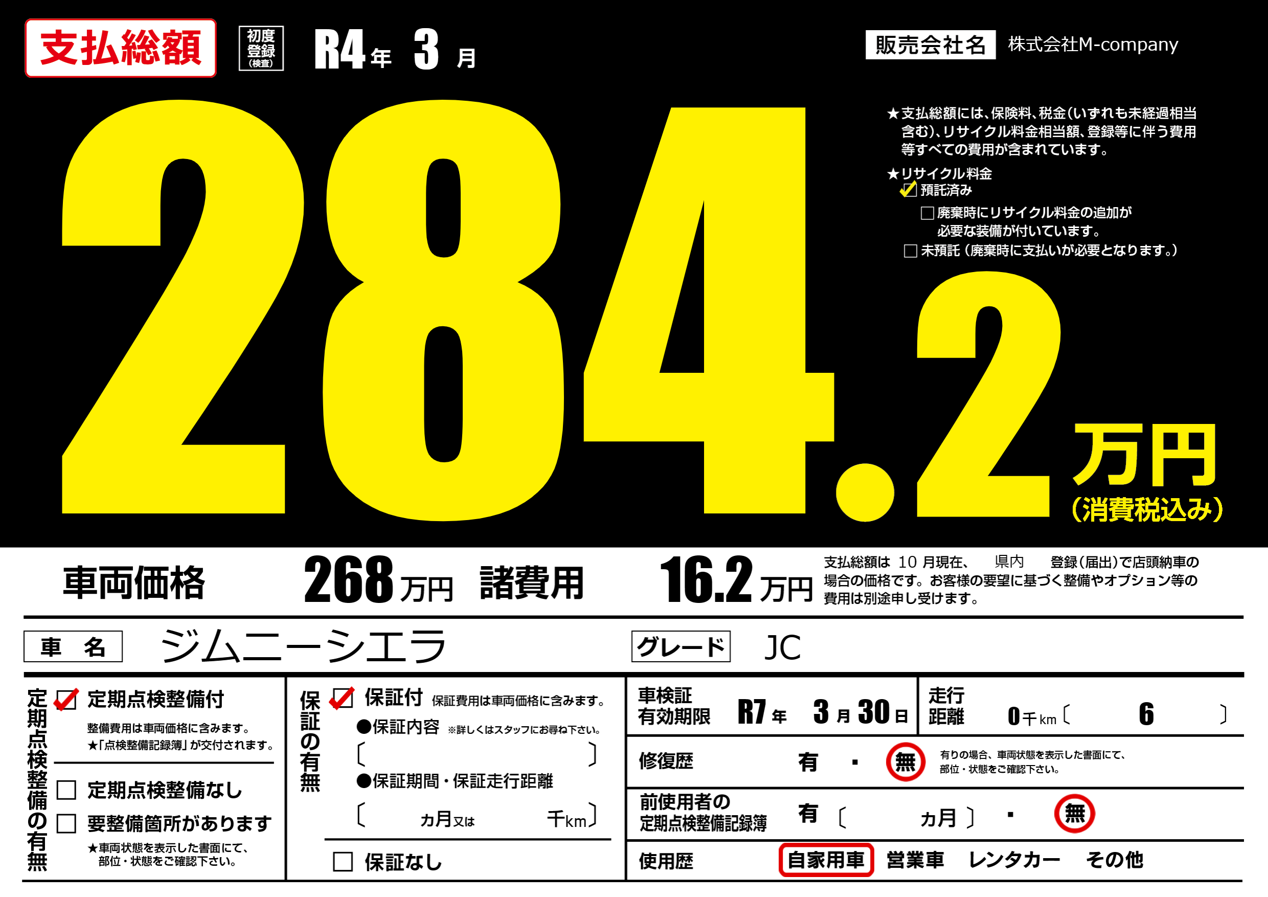 | 車検制限 | R7年 3月 30日 | ||