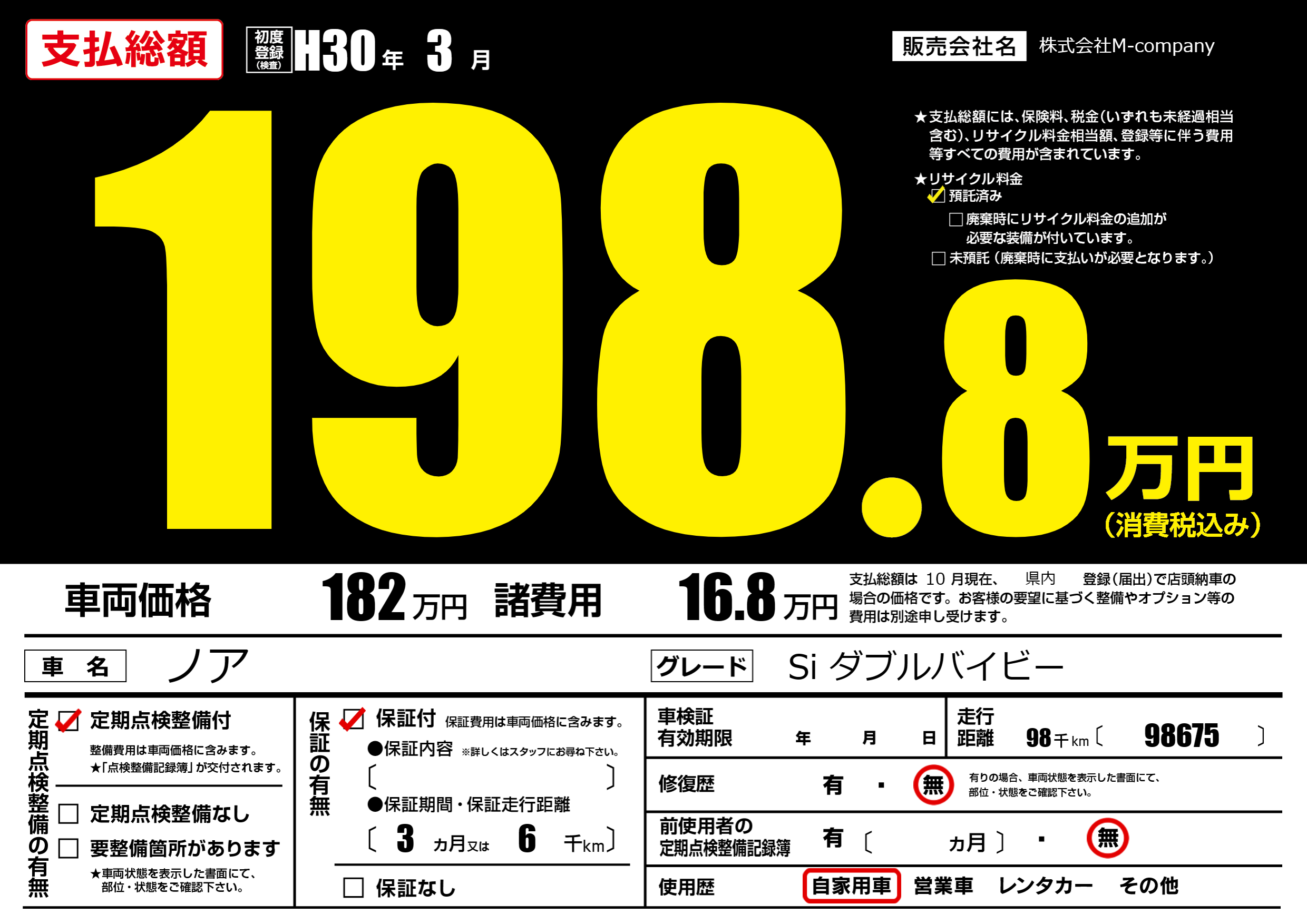| 走行キロ | 9.8万km | 初年度登録 | H30年3月 |