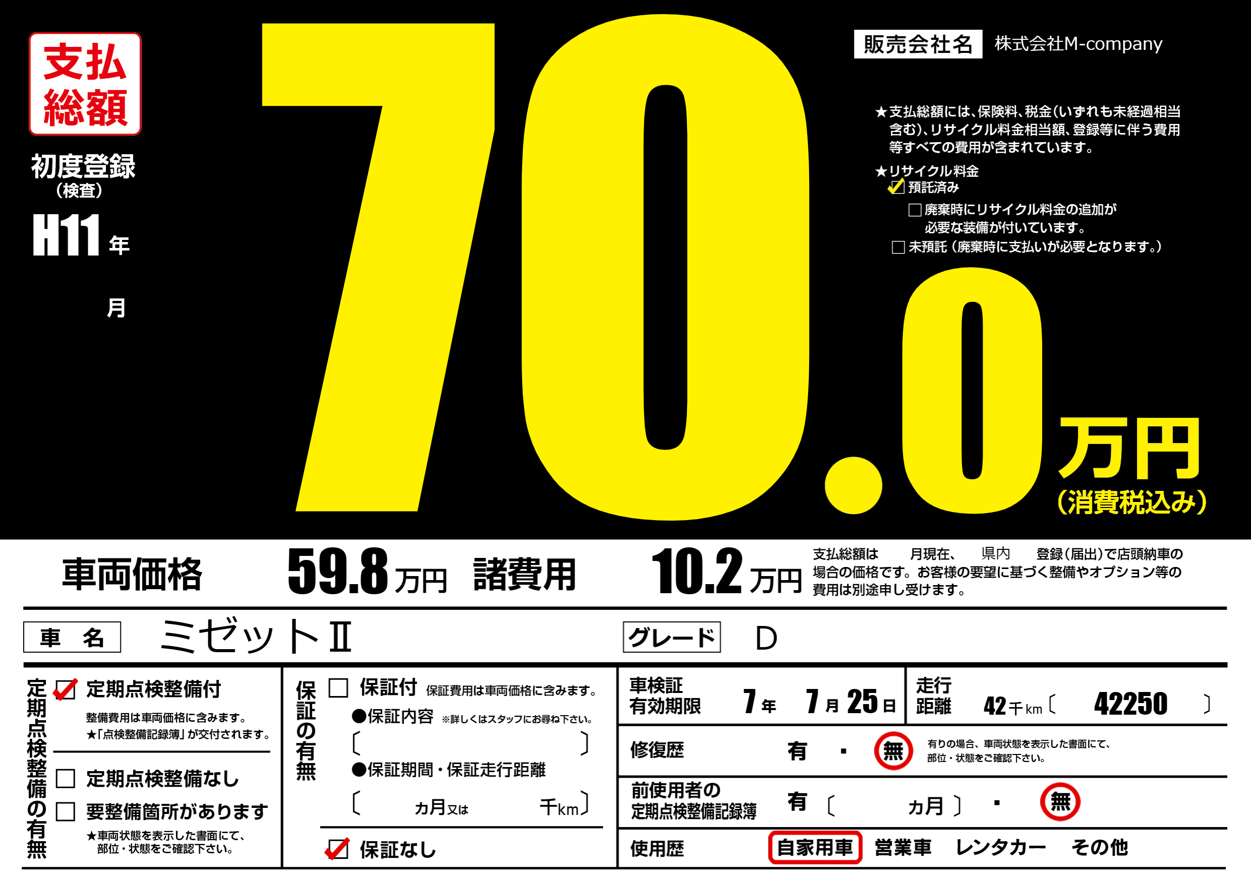 | 車検制限 | 7年 7月 25日 | ||