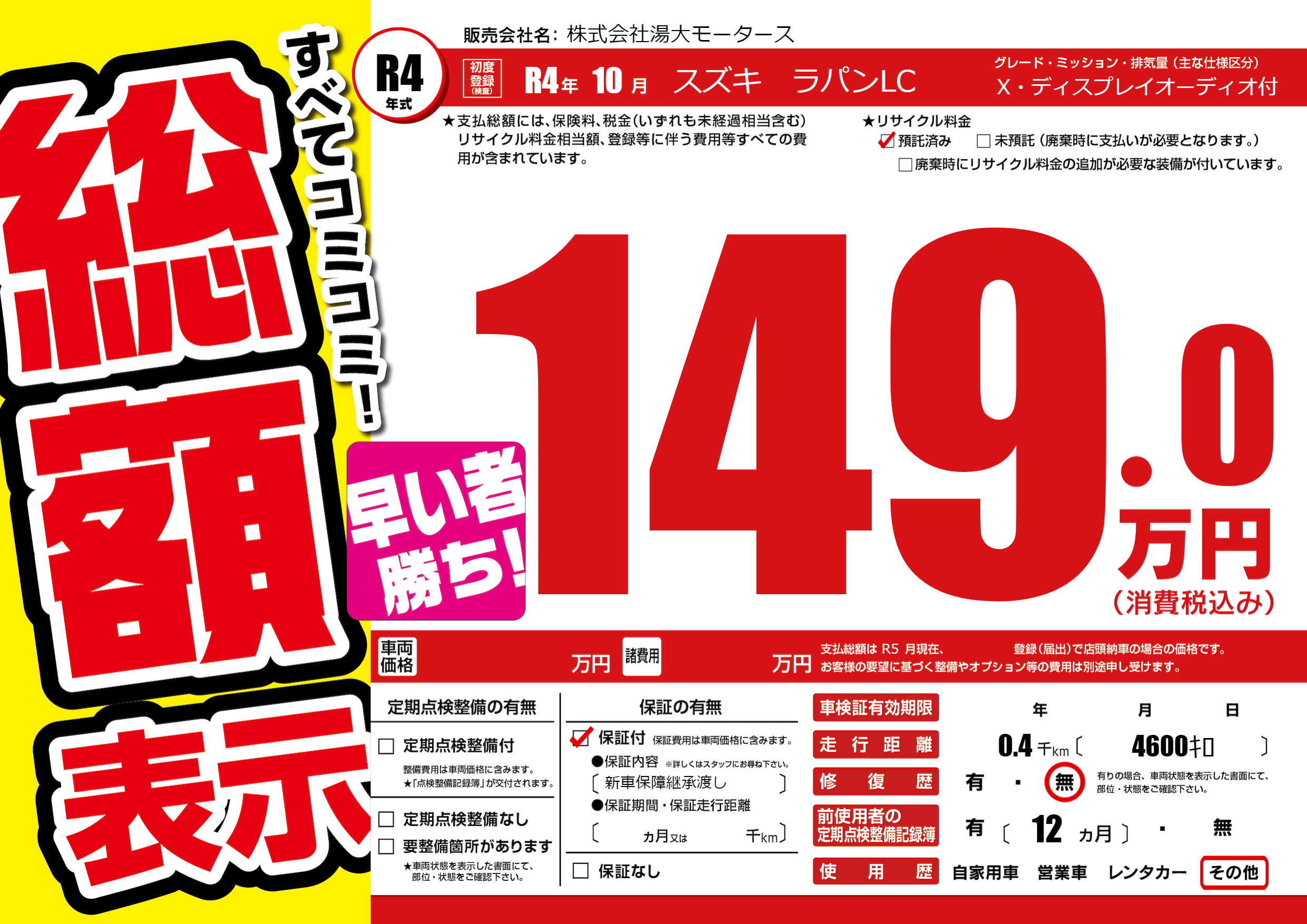 | 走行キロ | - | 初年度登録 | R4年10月 |