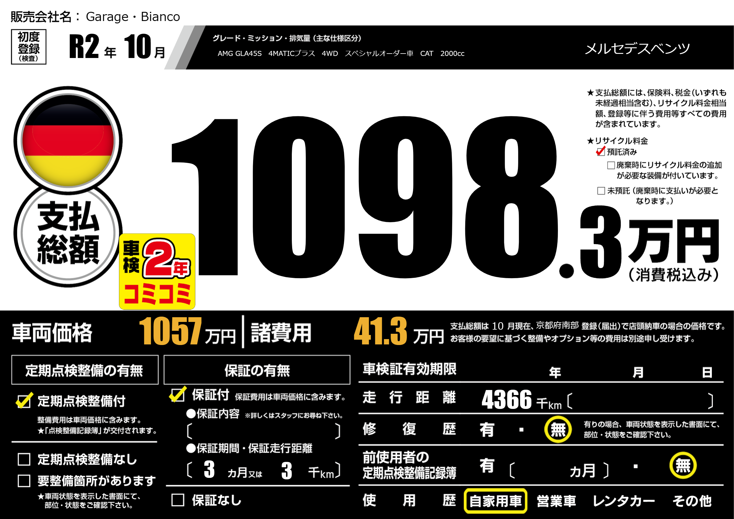 AMG GLA45S 4MATICプラス 4WD スペシャルオーダー車 CAT 2000cc |