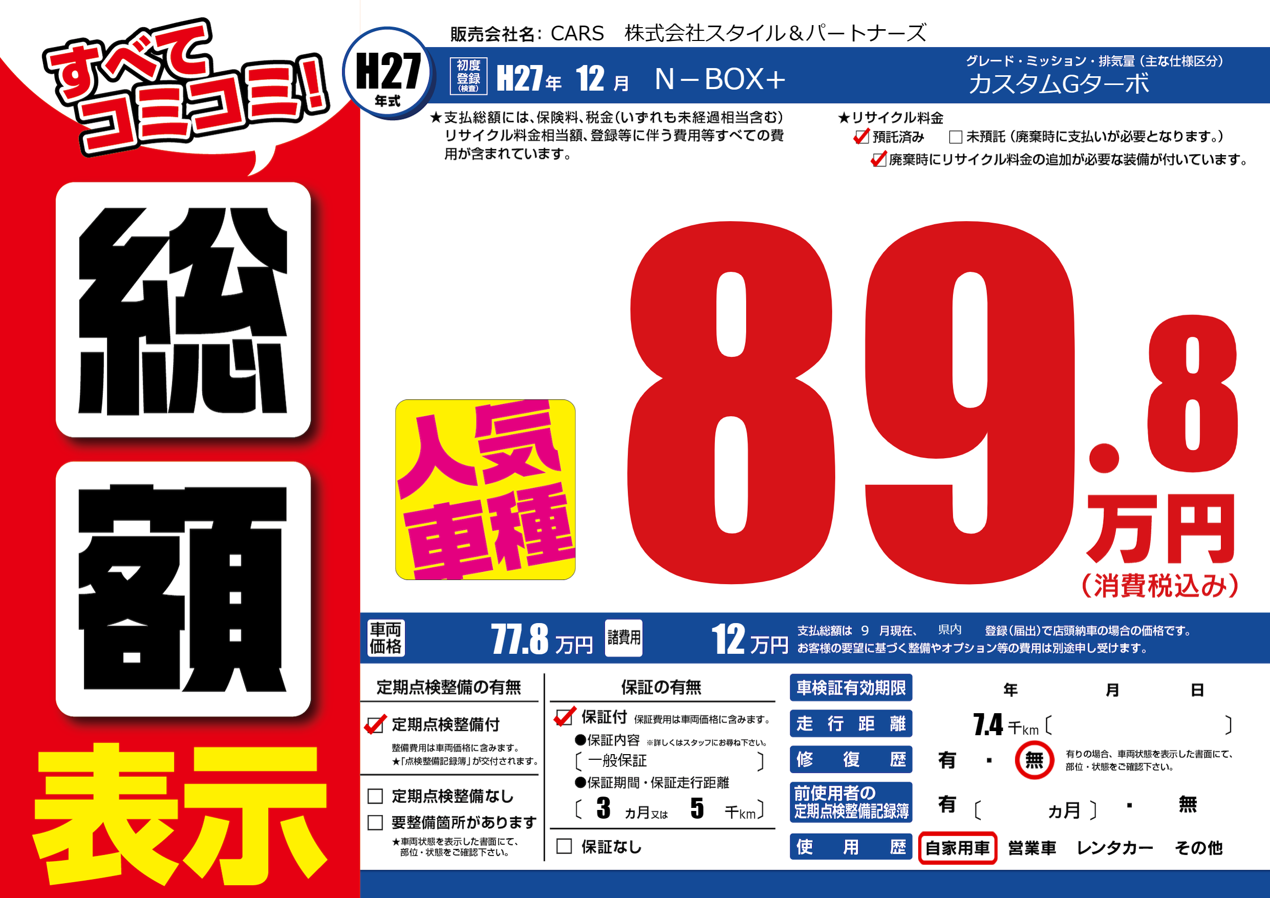 | 車名 | N-BOX+ | グレード ミッション 排気量 |