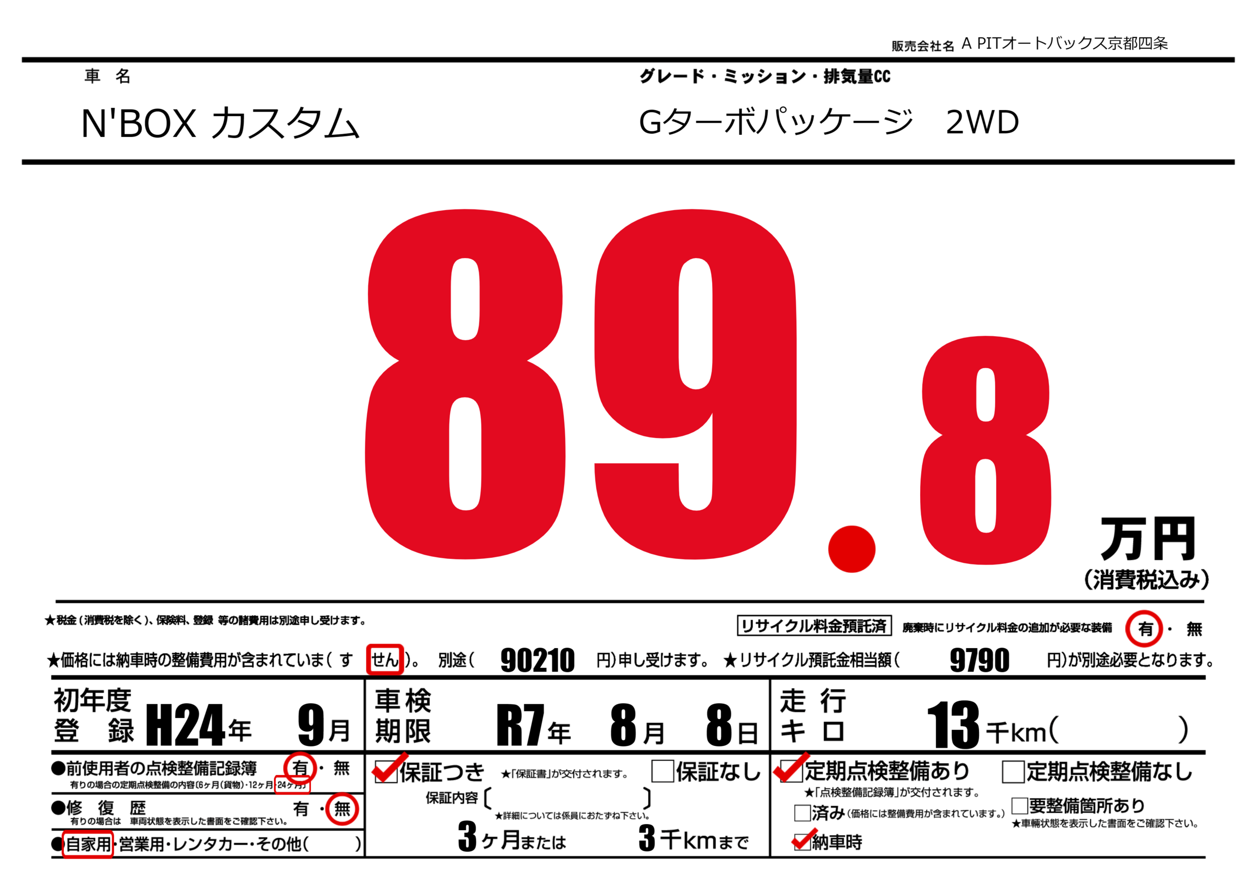 車検制限 | R7年8月8月 |