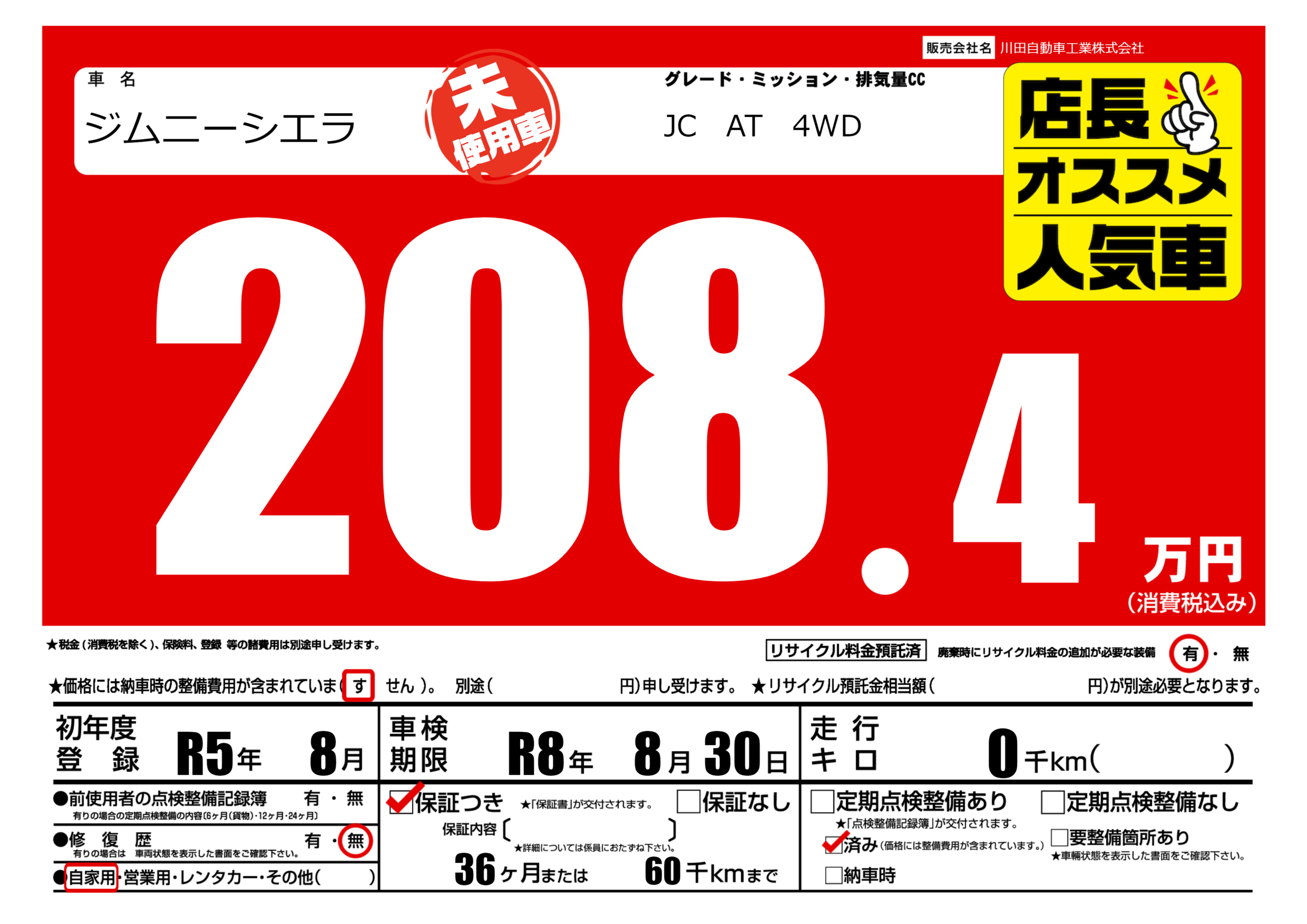 | 車名 | ジムニーシエラ | グレード ミッション 排気量 |