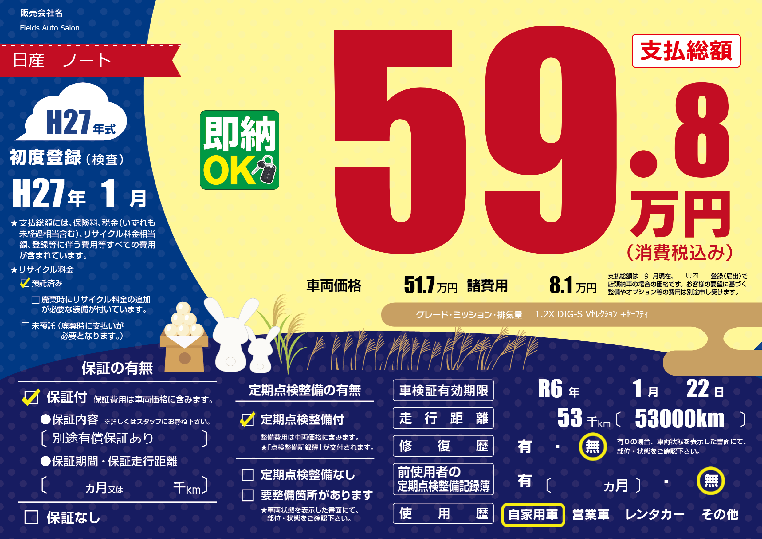 なし | 車検制限 | R6年1月22月 |