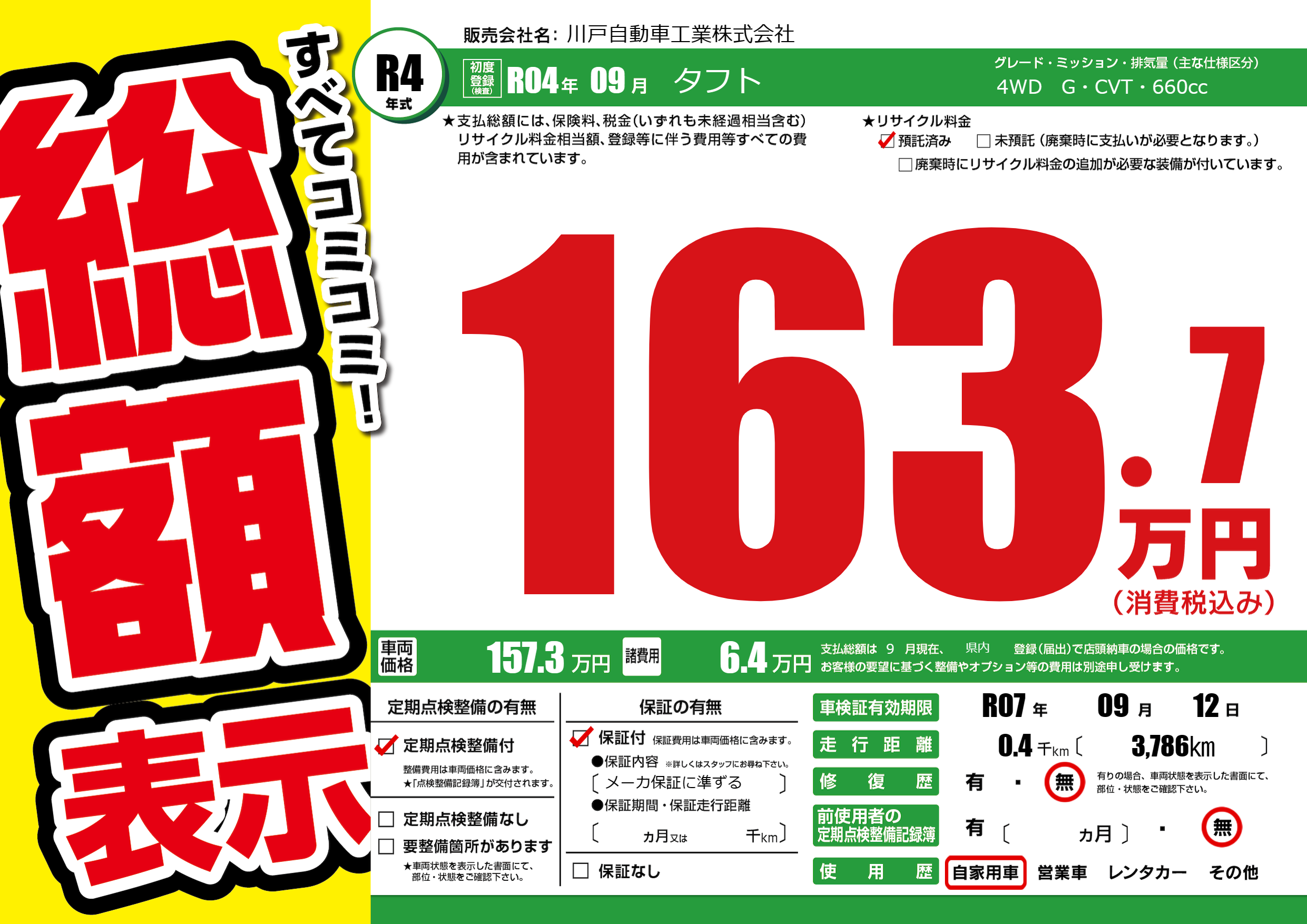 | 車検制限 | R07年 09月 12日 | ||