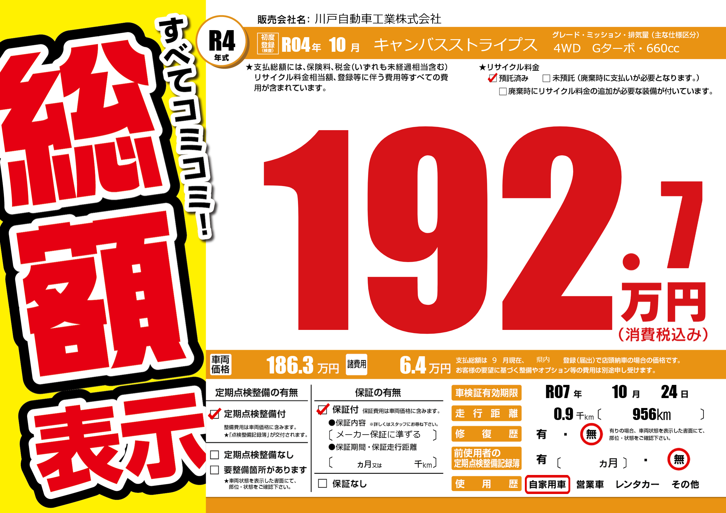 | 車名 | キャンバスストライプス | グレード ミッション 排気量 |