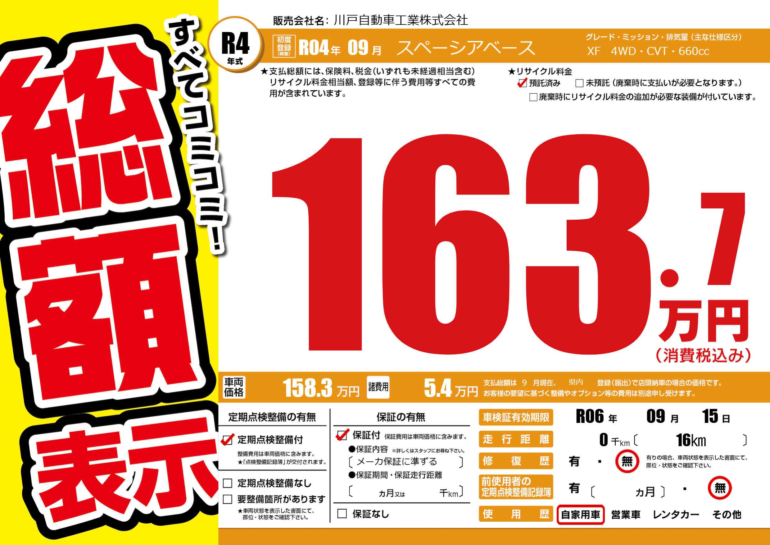 | 走行キロ | - | 初年度登録 | R04年09月 |