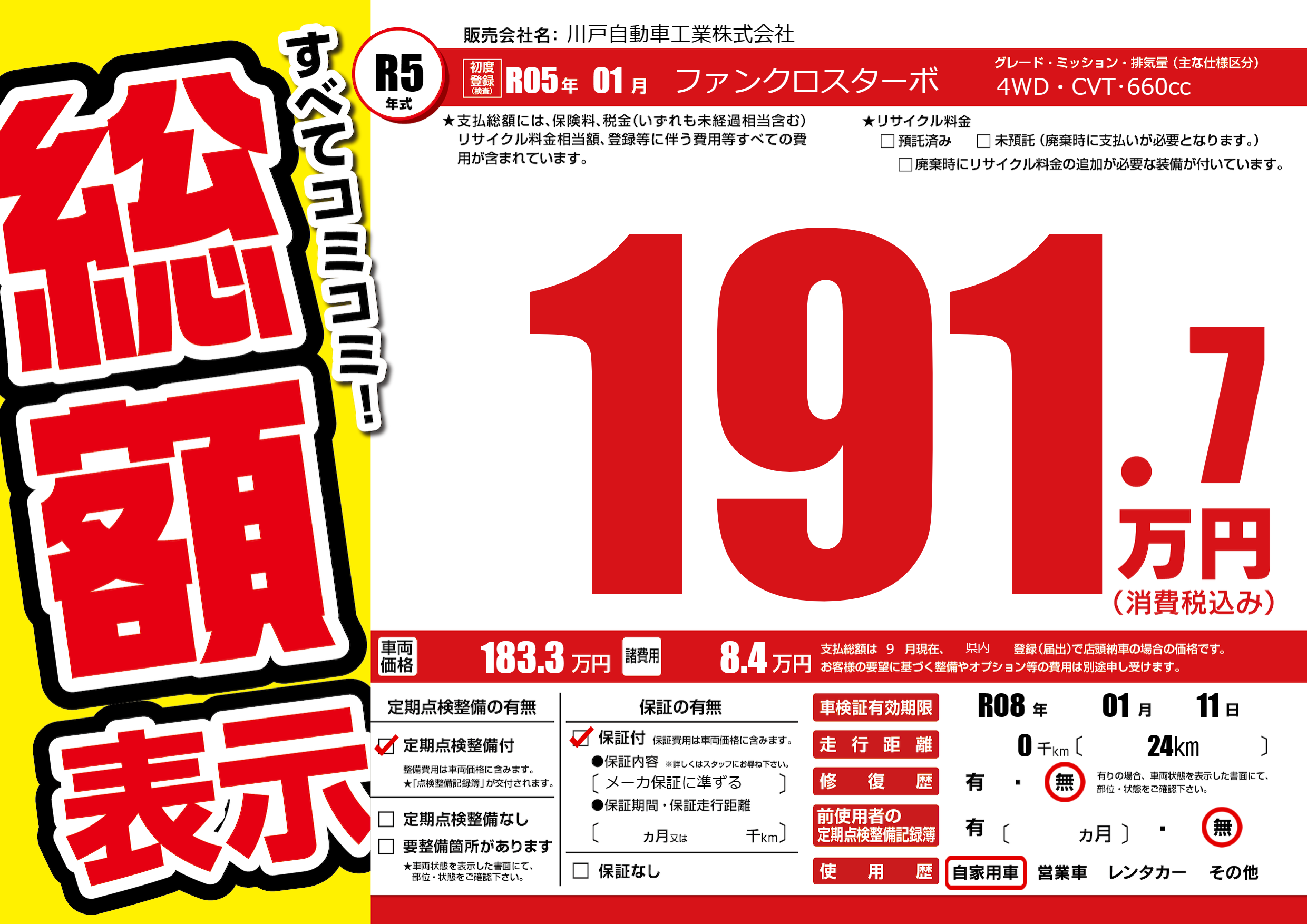 | 車検制限 | R08年 01月 11日 | ||