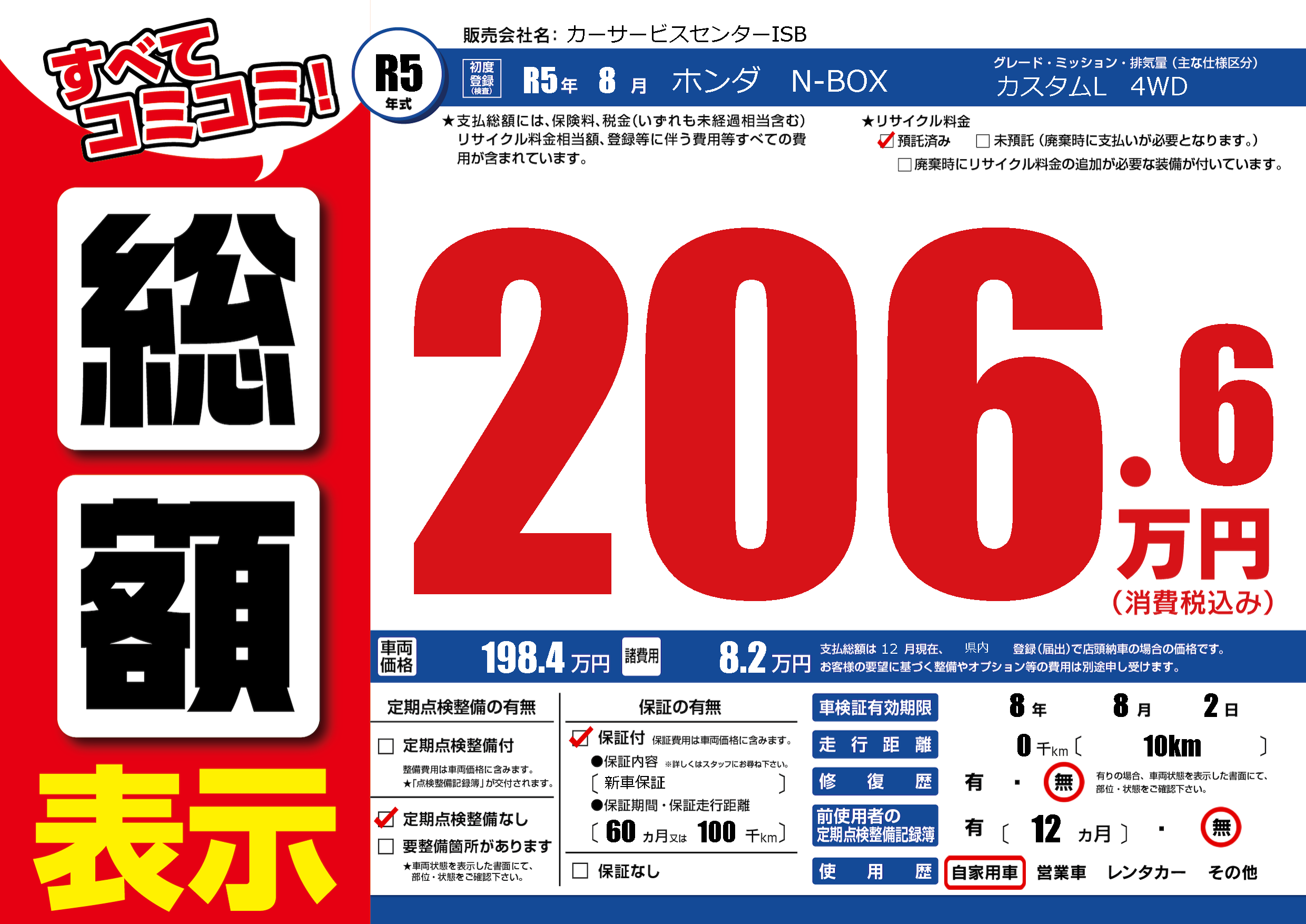 保証付き 保証内容(新車保証) 60ヶ月または(100)千kmまで |