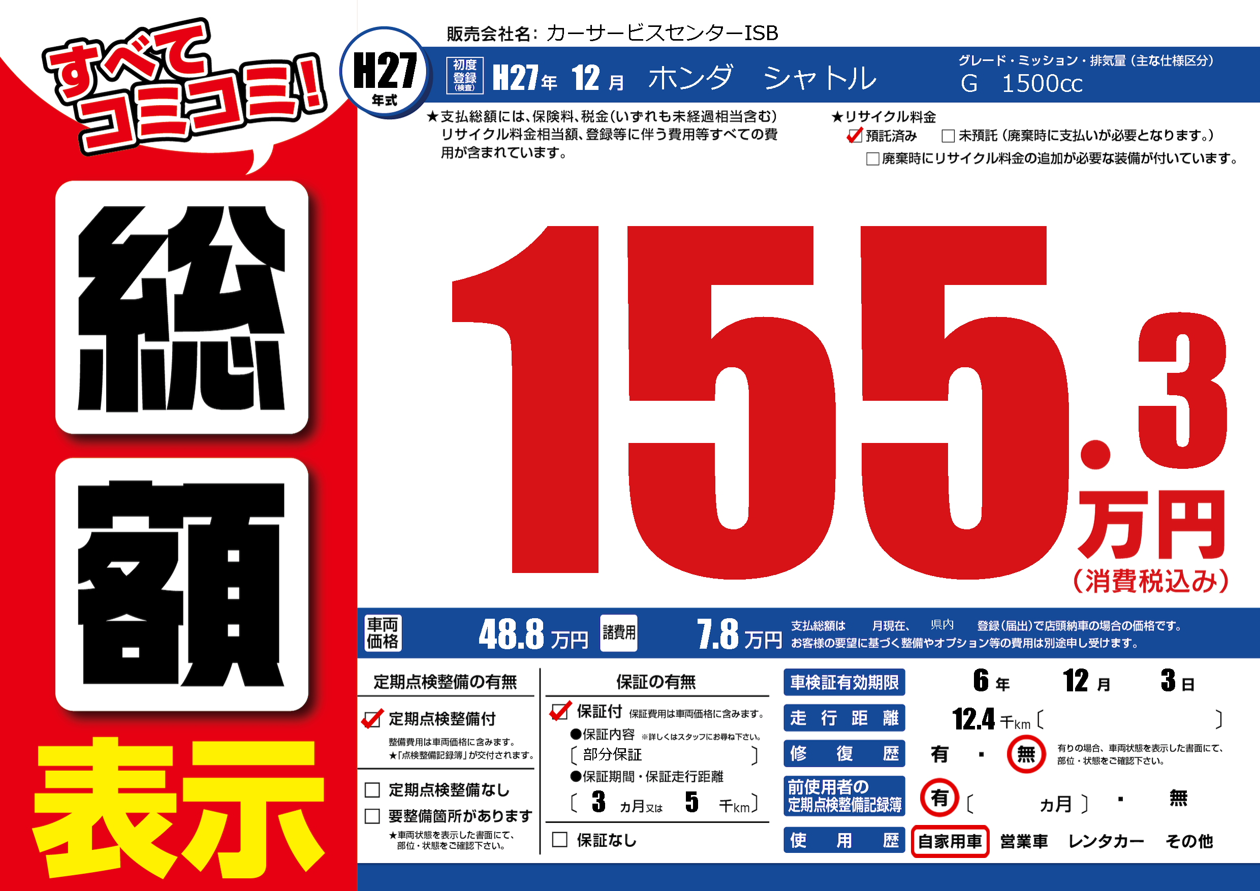 | 車名 | ホンダ シャトル | グレード ミッション 排気量 |