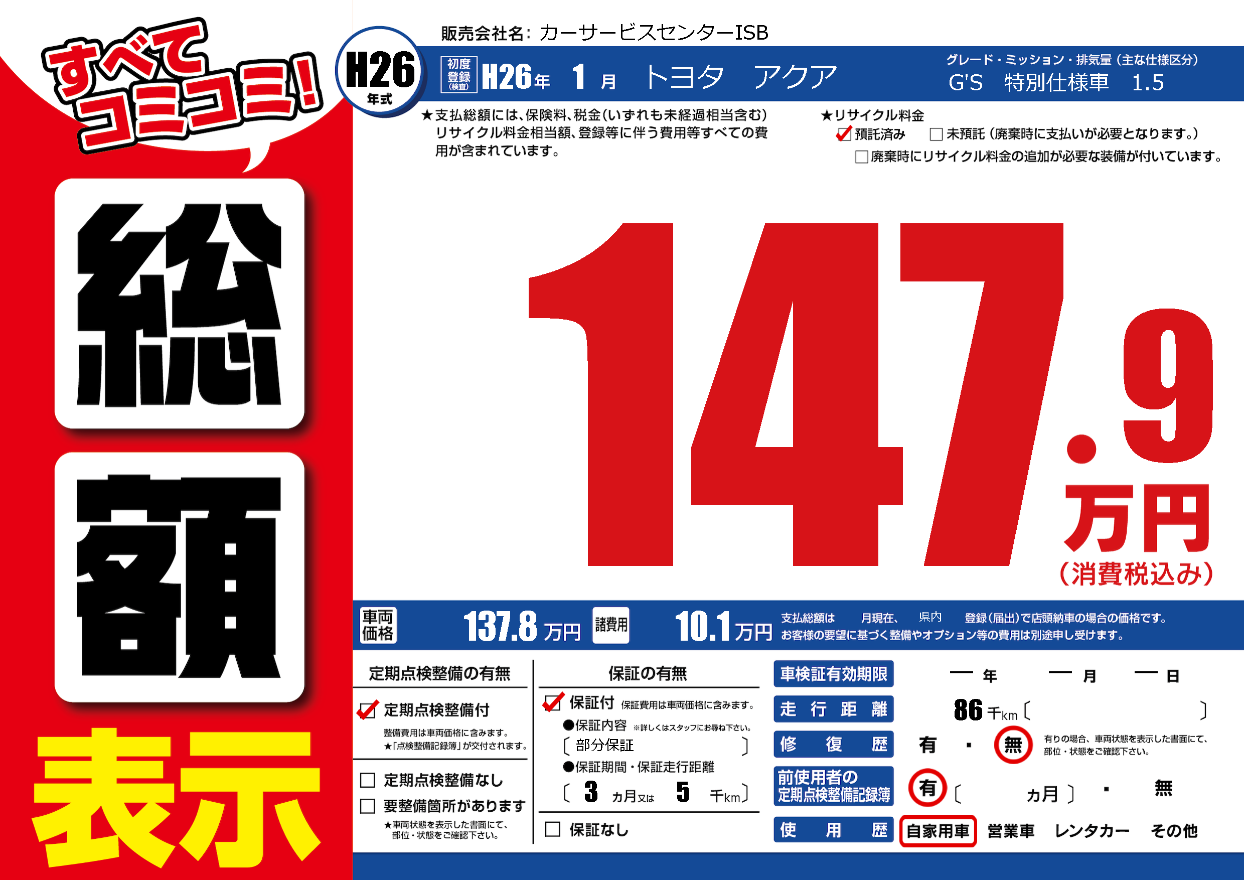 保証付き 保証内容(部分保証) 3ヶ月または(5)千kmまで |