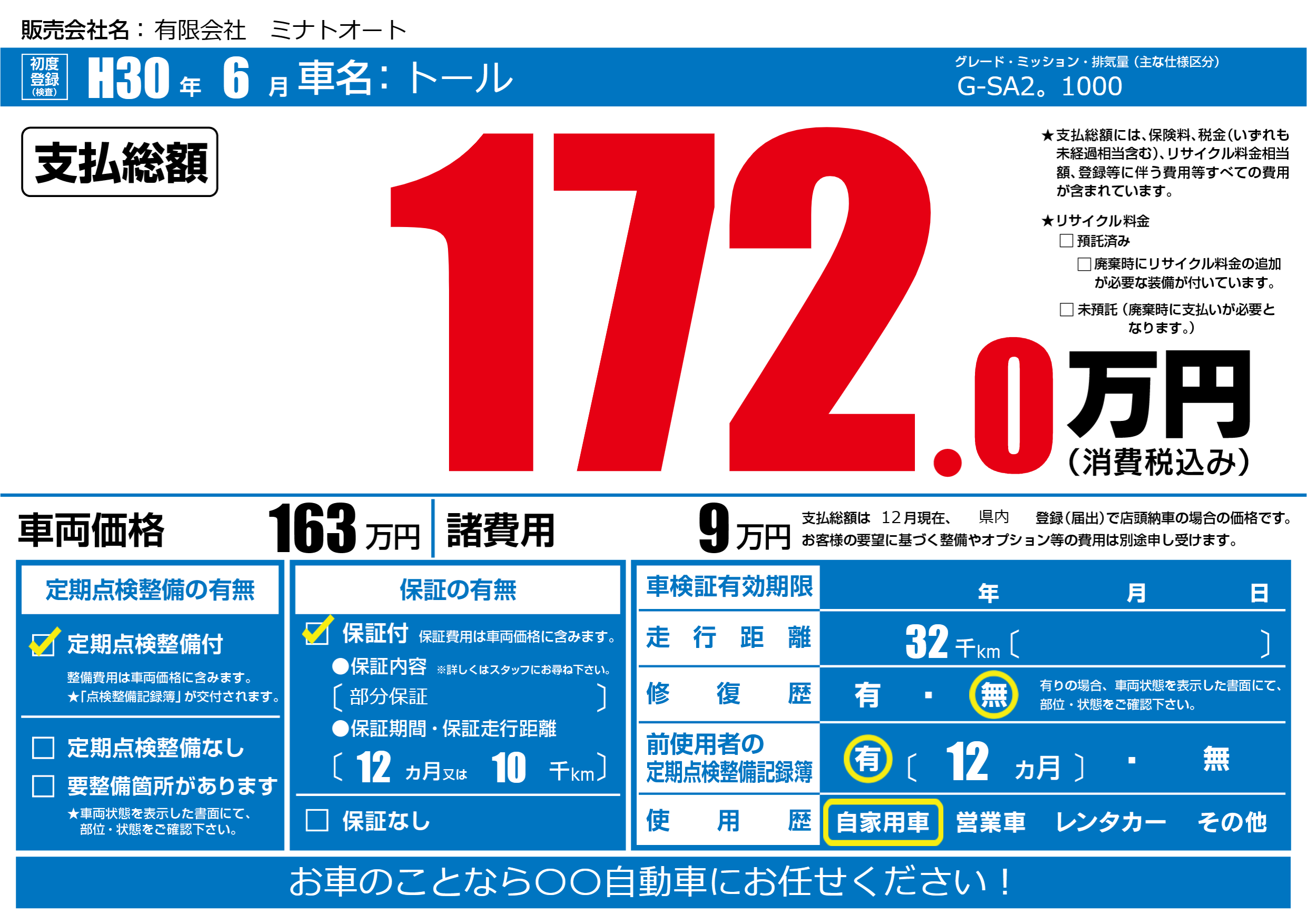 保証付き 保証内容(部分保証) 12ヶ月または(10)千kmまで |