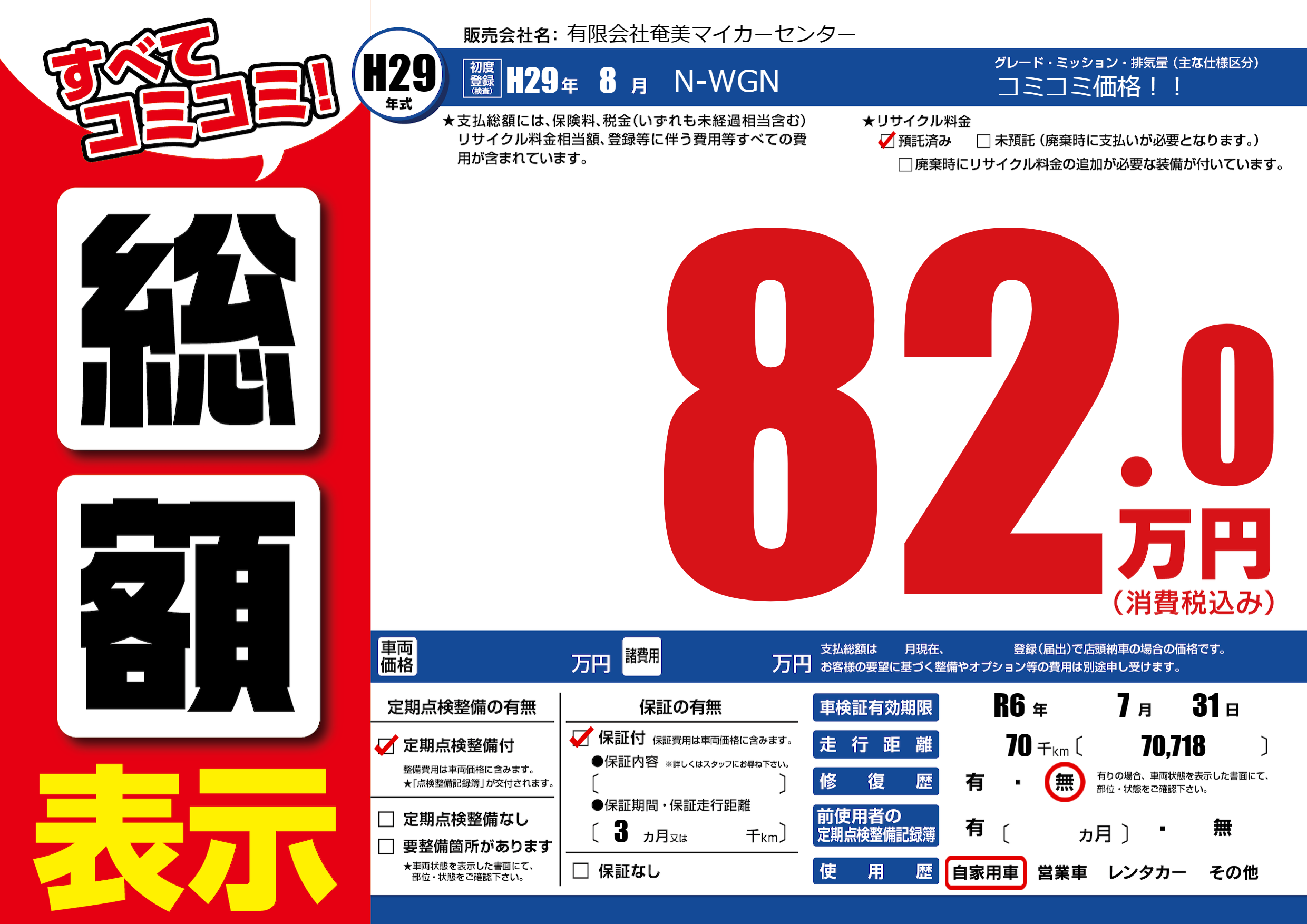 | 車検制限 | R6年 7月 31日 | ||
