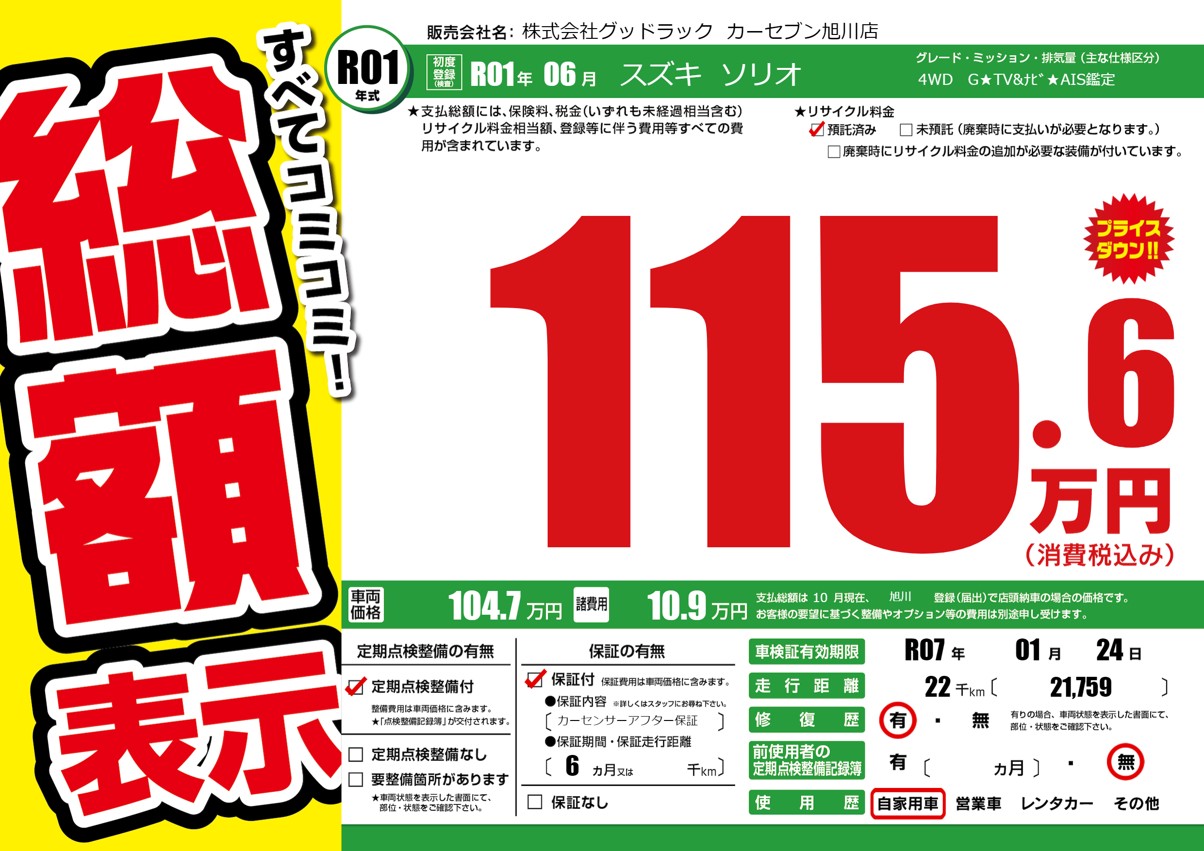 | 車名 | スズキ ソリオ | グレード ミッション 排気量 |
