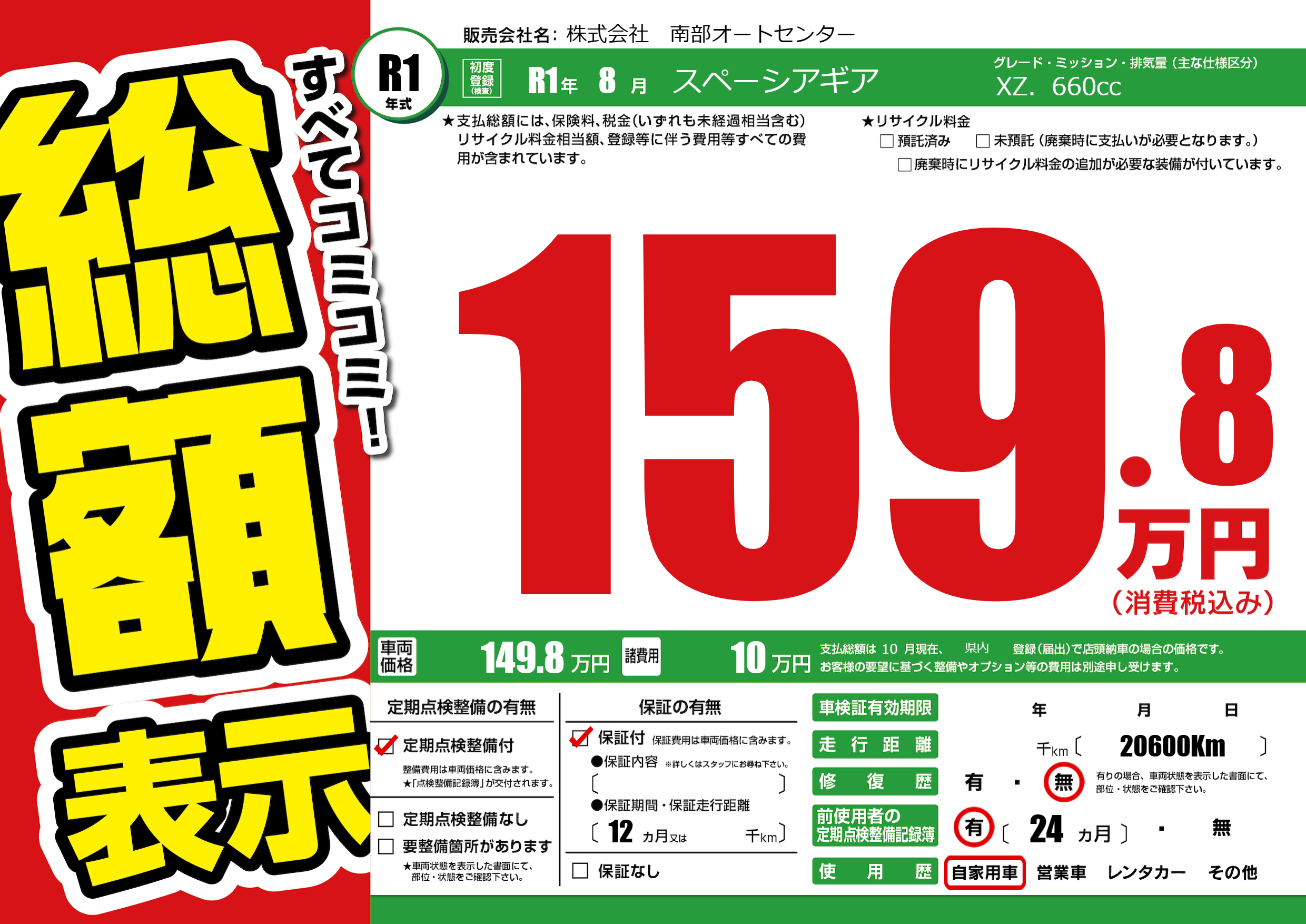 | 走行キロ | - | 初年度登録 | R1年8月 |