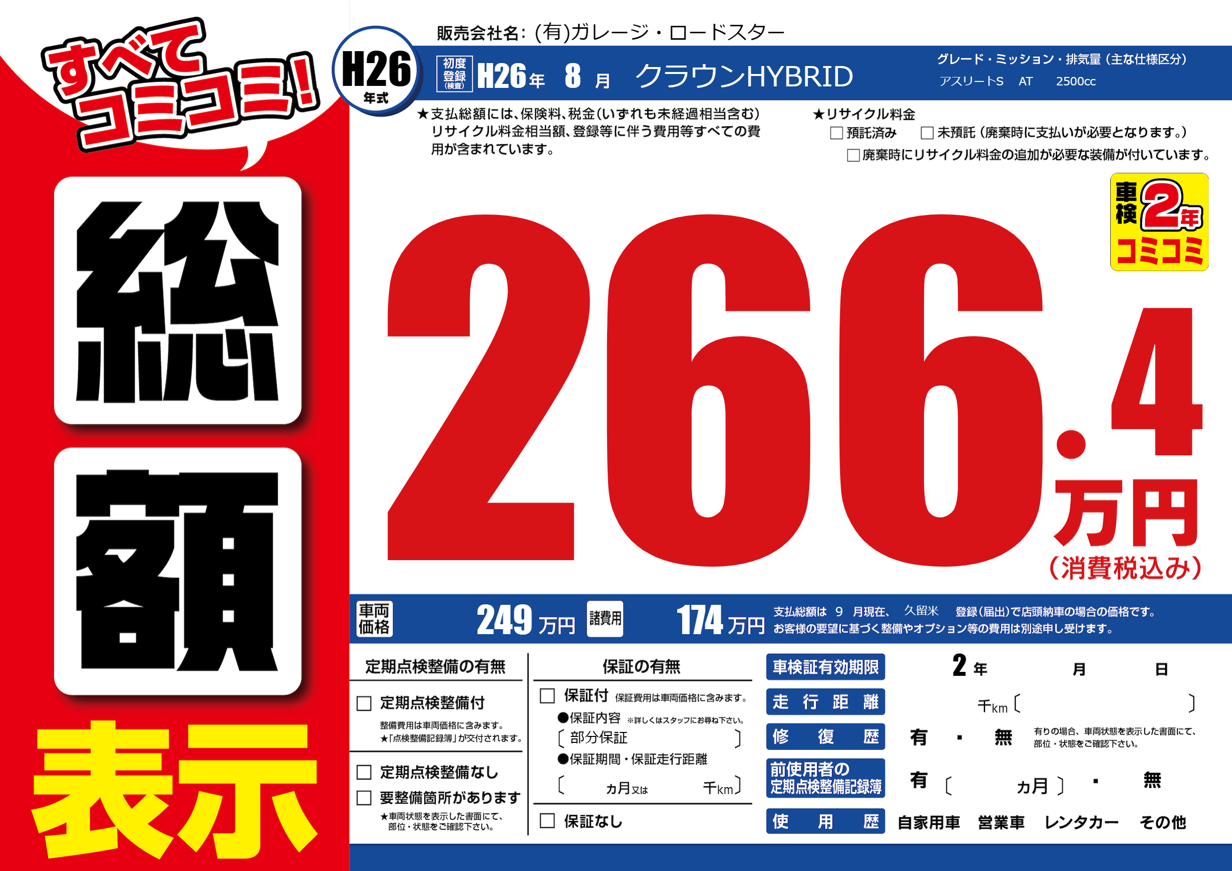 | 車名 | クラウンHYBRID | グレード ミッション 排気量 |